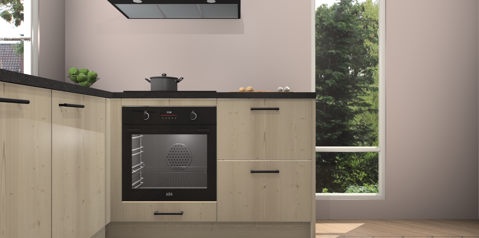 De Vuren keuken Phuket heeft alles wat u maar kunt wensen. Niet alleen zijn er softclose deuren, maar ook 5 ingebouwde apparaten: een oven, inductiekookplaat, afzuigkap, vaatwasser en koelkast - waarbij u later gemakkelijk naar het AEG merk, van inductiekookplaat naar kookplaat met geïntegreerde afzuiging of van oven naar combimagnetron kunt upgraden. Dat alles tegen een vast laag tarief! Bovendien geeft de Vuren keuken Phuket supersnelle levering van 7 weken. Echt iets voor u als u er niet op wilt wachten om het resultaat te zien in eigen keuken!