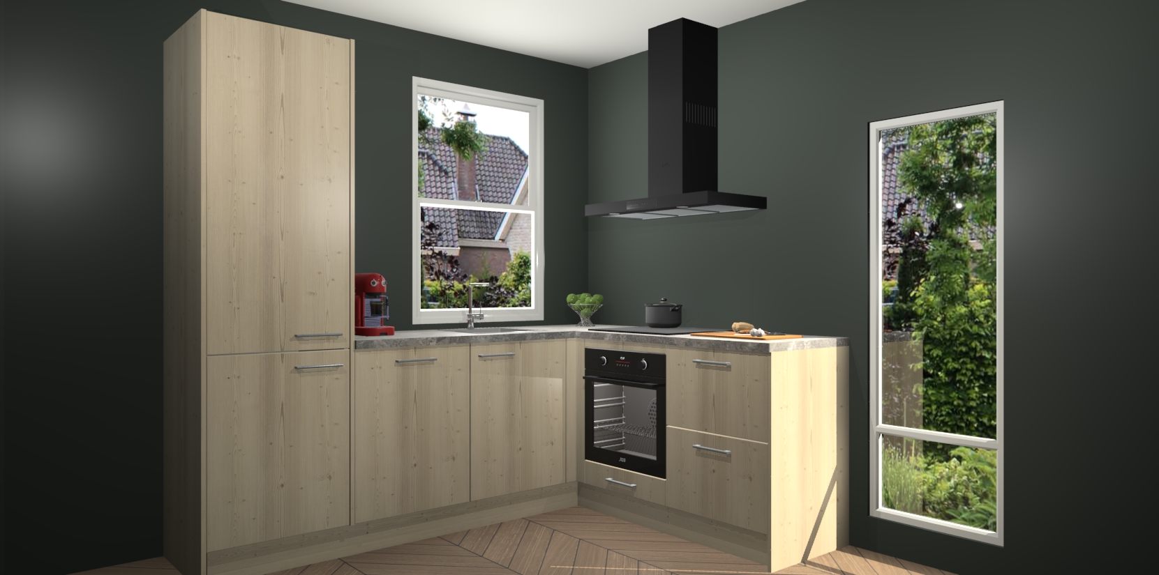 De prachtige Vuren keuken Phuket is de perfecte keuze als u op zoek bent naar een moderne hoekkeuken met alle luxe en comfort die u kunt verwachten! De uitstraling in het houtlook-design draagt bij aan de warme sfeer die u nu al voelt wanneer u er naar kijkt. Heeft u genoeg van ouderwetse keukens? Probeer dan direct deze moderne, mooie hoekkeukens en laat iedereen verbluft achter!