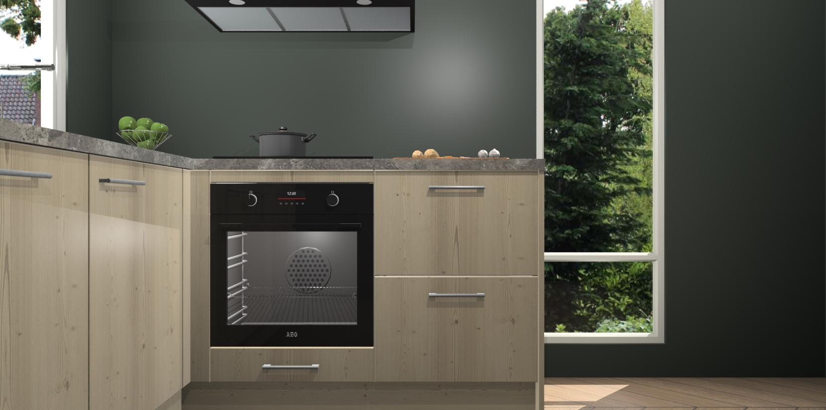 De Vuren keuken Phuket heeft alles wat u maar kunt wensen. Niet alleen zijn er softclose deuren, maar ook 5 ingebouwde apparaten: een oven, inductiekookplaat, afzuigkap, vaatwasser en koelkast - waarbij u later gemakkelijk naar het AEG merk, van inductiekookplaat naar kookplaat met geïntegreerde afzuiging of van oven naar combimagnetron kunt upgraden. Dat alles tegen een vast laag tarief! Bovendien geeft de Vuren keuken Phuket supersnelle levering van 7 weken. Echt iets voor u als u er niet op wilt wachten om het resultaat te zien in eigen keuken!