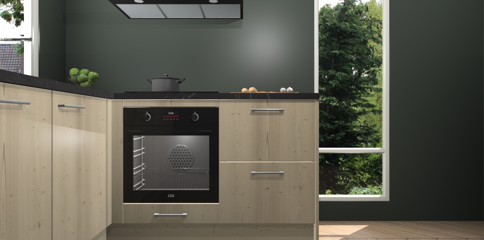 De Vuren keuken Phuket heeft alles wat u maar kunt wensen. Niet alleen zijn er softclose deuren, maar ook 5 ingebouwde apparaten: een oven, inductiekookplaat, afzuigkap, vaatwasser en koelkast - waarbij u later gemakkelijk naar het AEG merk, van inductiekookplaat naar kookplaat met geïntegreerde afzuiging of van oven naar combimagnetron kunt upgraden. Dat alles tegen een vast laag tarief! Bovendien geeft de Vuren keuken Phuket supersnelle levering van 7 weken. Echt iets voor u als u er niet op wilt wachten om het resultaat te zien in eigen keuken!