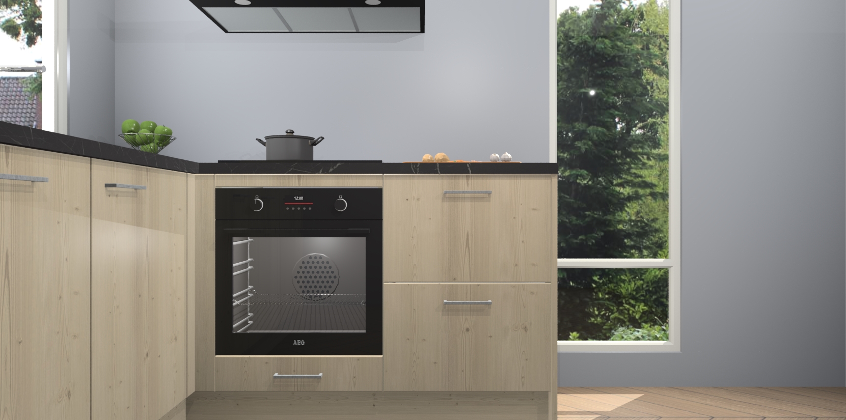 De Vuren keuken Phuket heeft alles wat u maar kunt wensen. Niet alleen zijn er softclose deuren, maar ook 5 ingebouwde apparaten: een oven, inductiekookplaat, afzuigkap, vaatwasser en koelkast - waarbij u later gemakkelijk naar het AEG merk, van inductiekookplaat naar kookplaat met geïntegreerde afzuiging of van oven naar combimagnetron kunt upgraden. Dat alles tegen een vast laag tarief! Bovendien geeft de Vuren keuken Phuket supersnelle levering van 7 weken. Echt iets voor u als u er niet op wilt wachten om het resultaat te zien in eigen keuken!