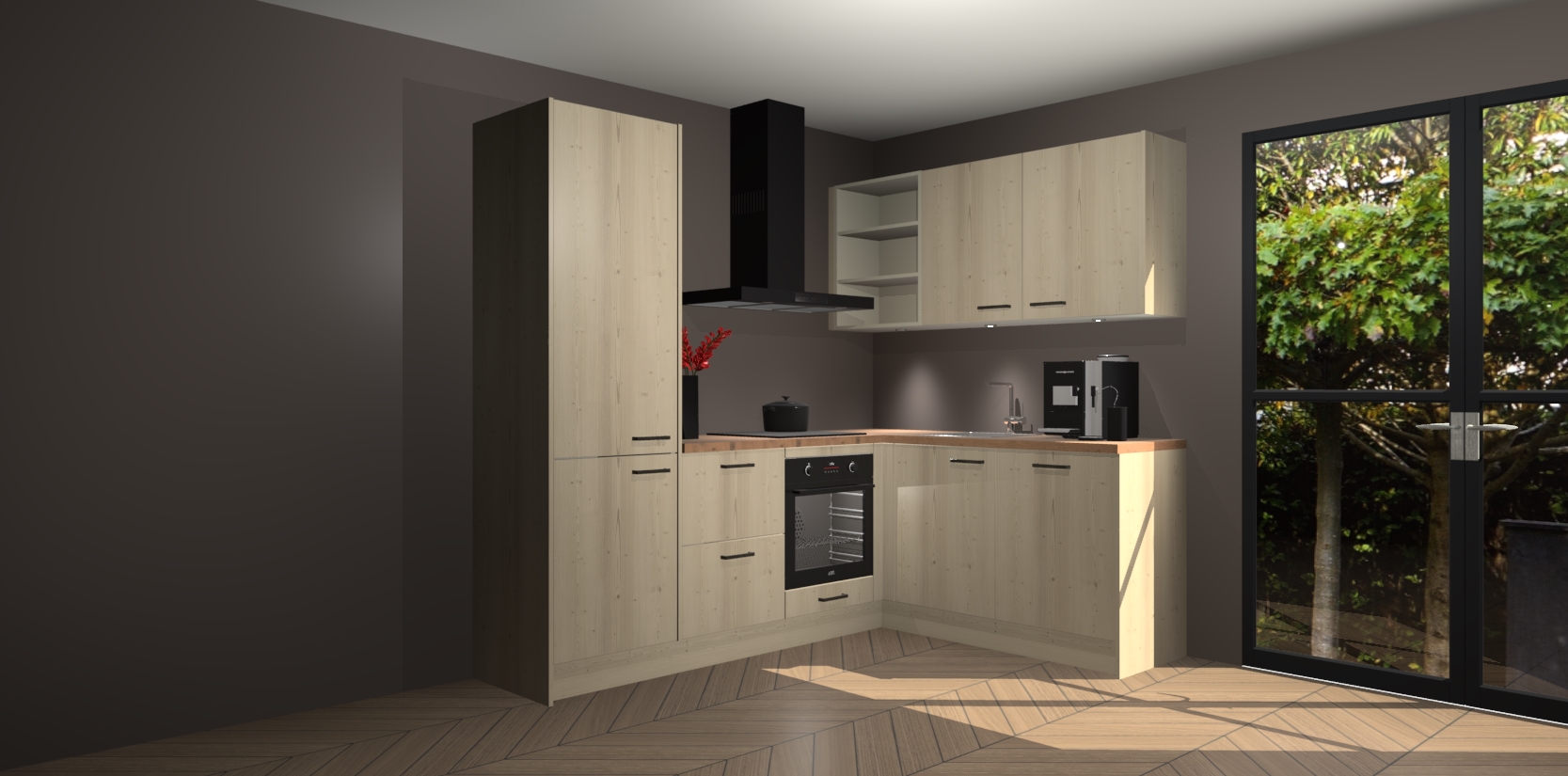 Wauw, dit is de Vuren keuken Pilsen! U kunt gerust zeggen dat u elegantie combineert met functionaliteit met deze keuken. Met een modern en chique ontwerp is de keuken precies wat u nodig heeft om uw ruimte te verfraaien. De binnenzijde van de kasten is in dezelfde donkere kleur als de buitenzijde voor een uniforme look, compleet met softclose-kasten die stil sluiten.
