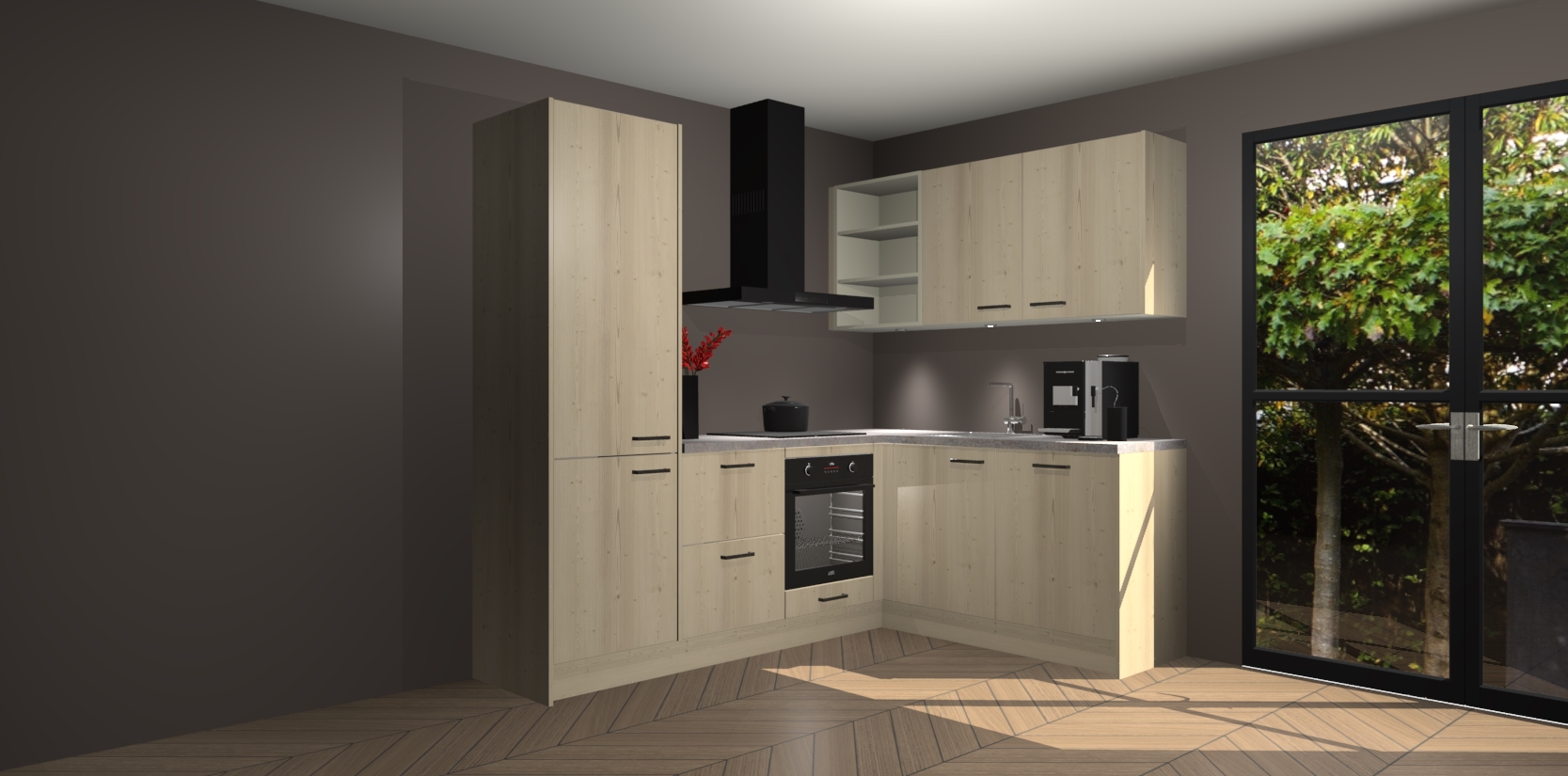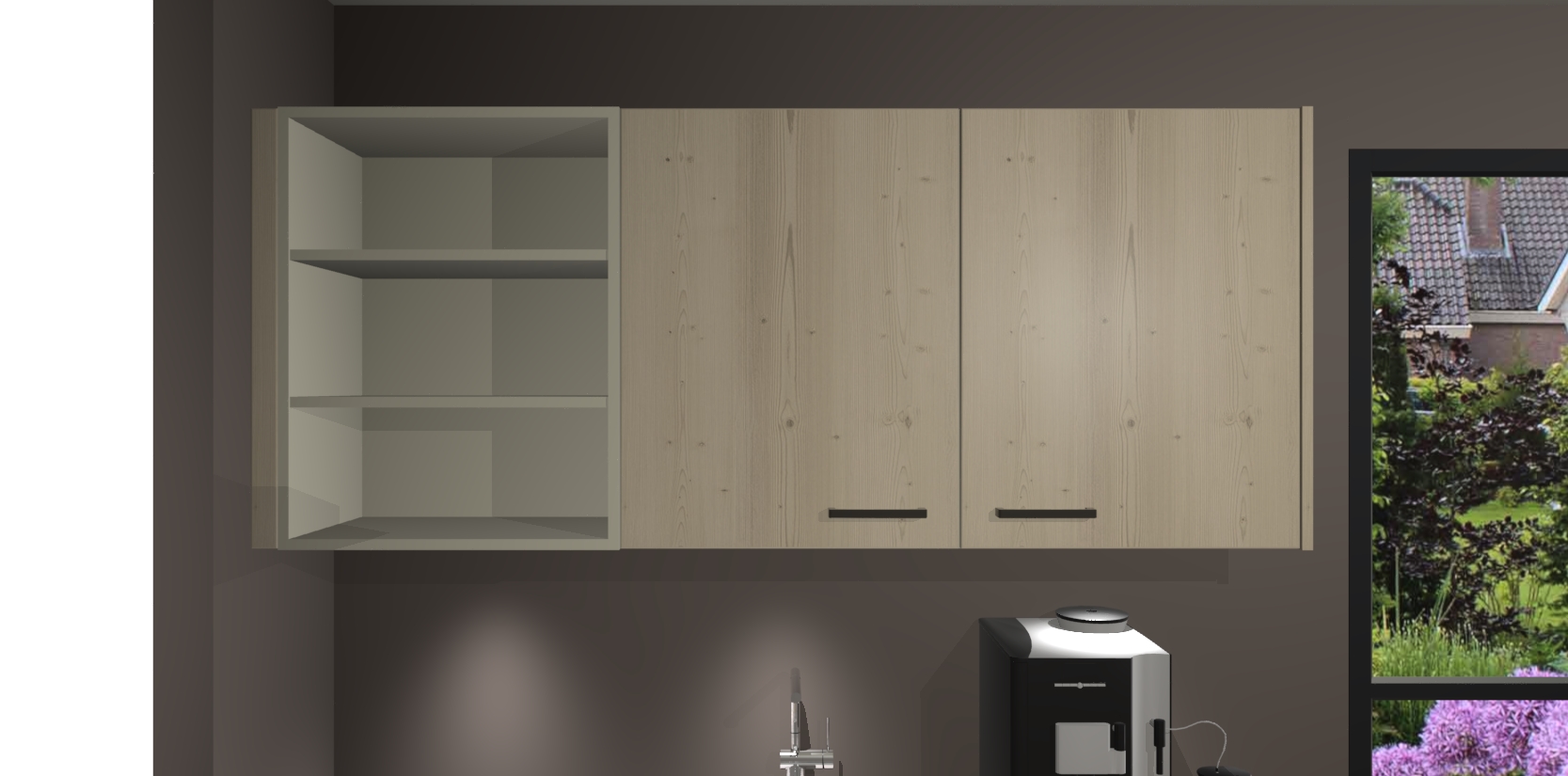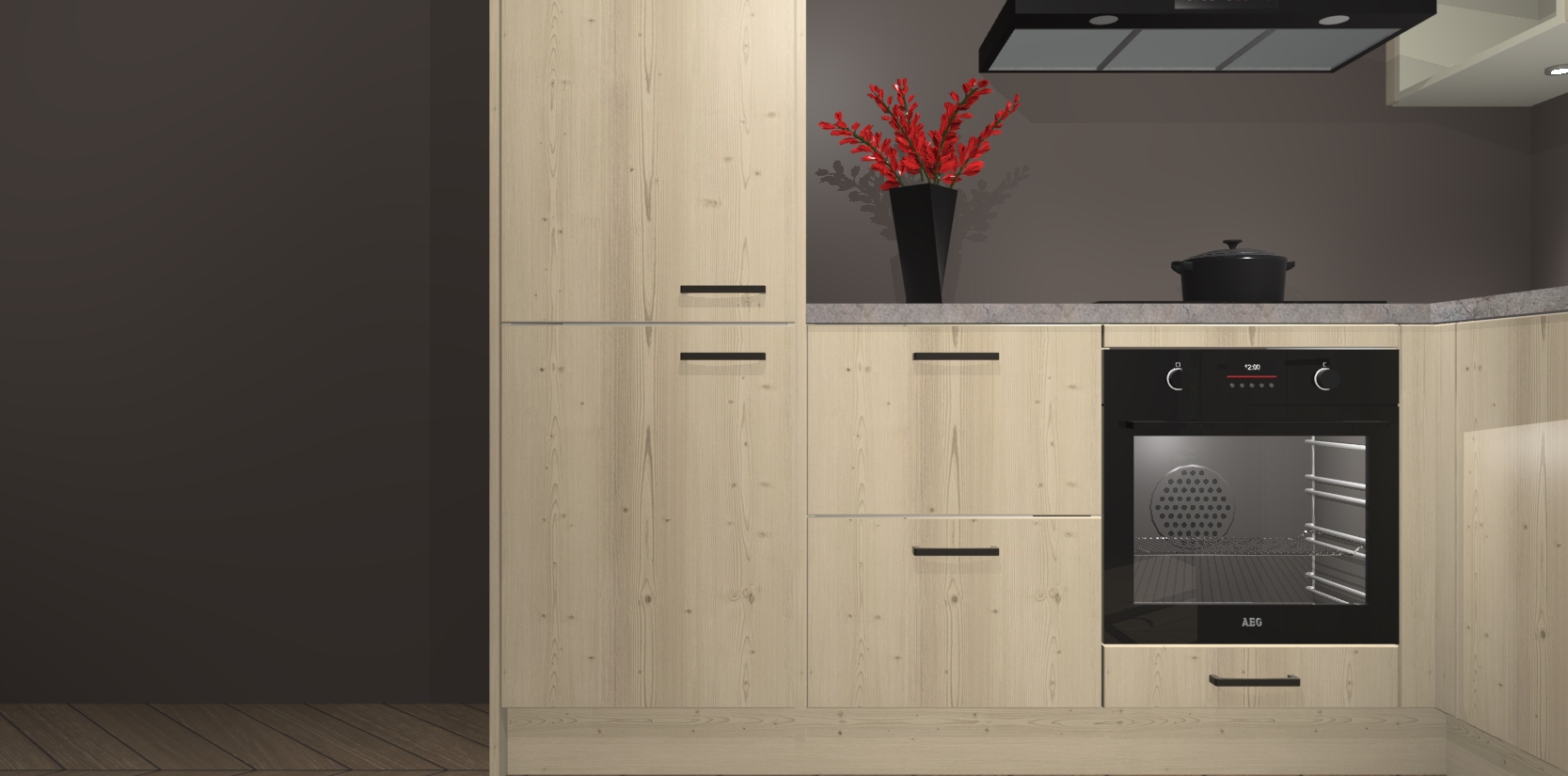 Wauw, dit is de Vuren keuken Pilsen! U kunt gerust zeggen dat u elegantie combineert met functionaliteit met deze keuken. Met een modern en chique ontwerp is de keuken precies wat u nodig heeft om uw ruimte te verfraaien. De binnenzijde van de kasten is in dezelfde donkere kleur als de buitenzijde voor een uniforme look, compleet met softclose-kasten die stil sluiten.