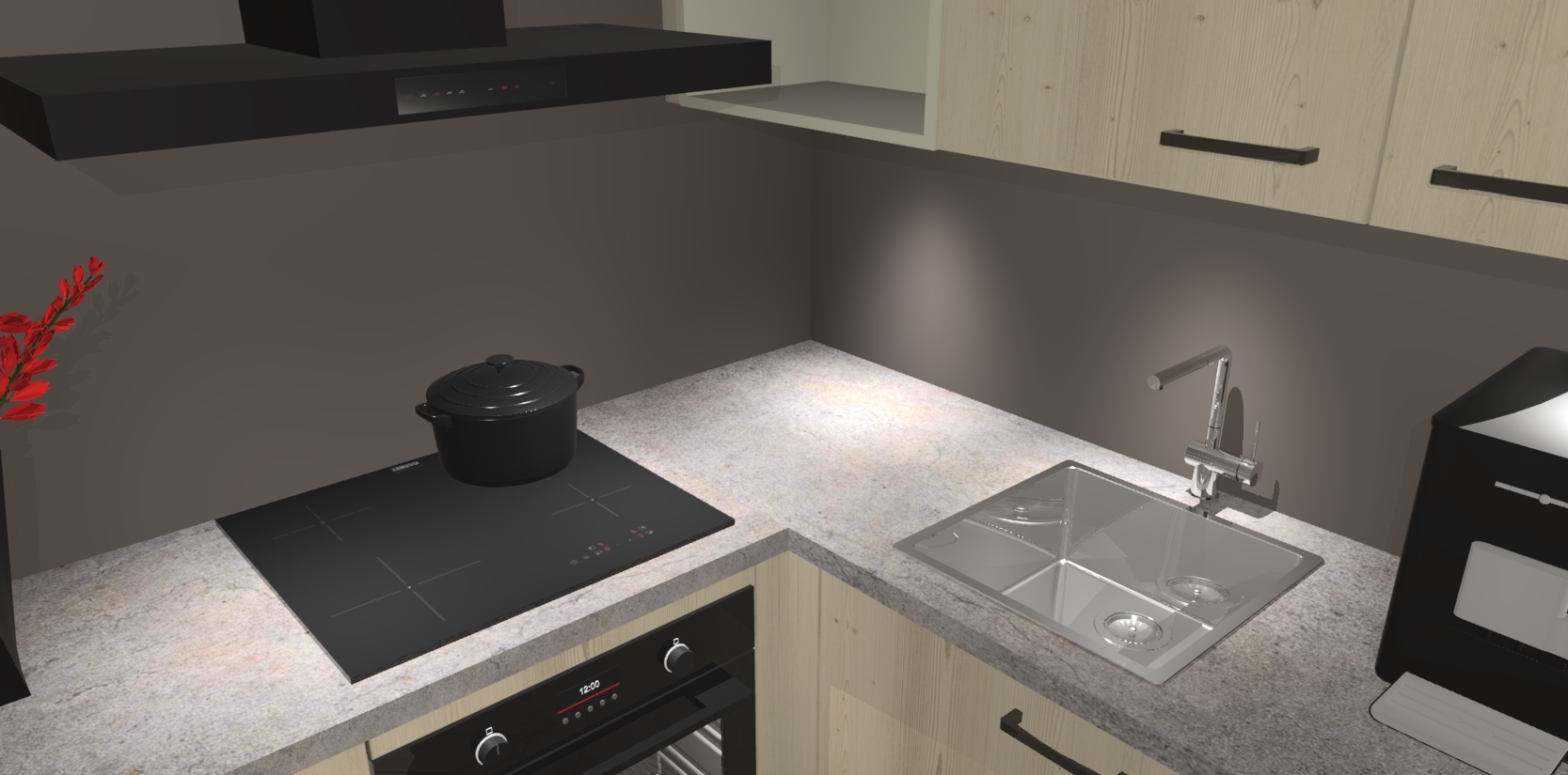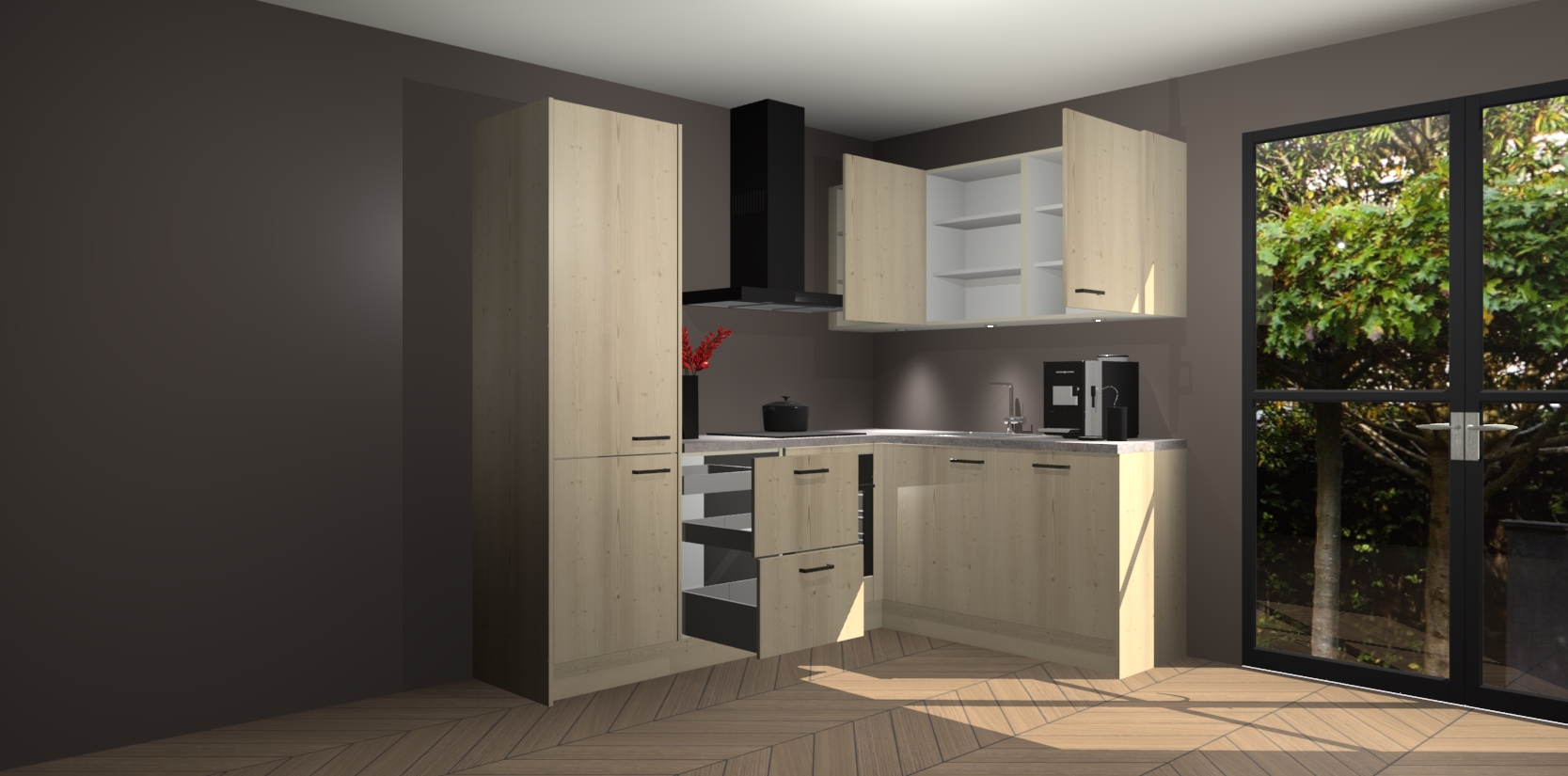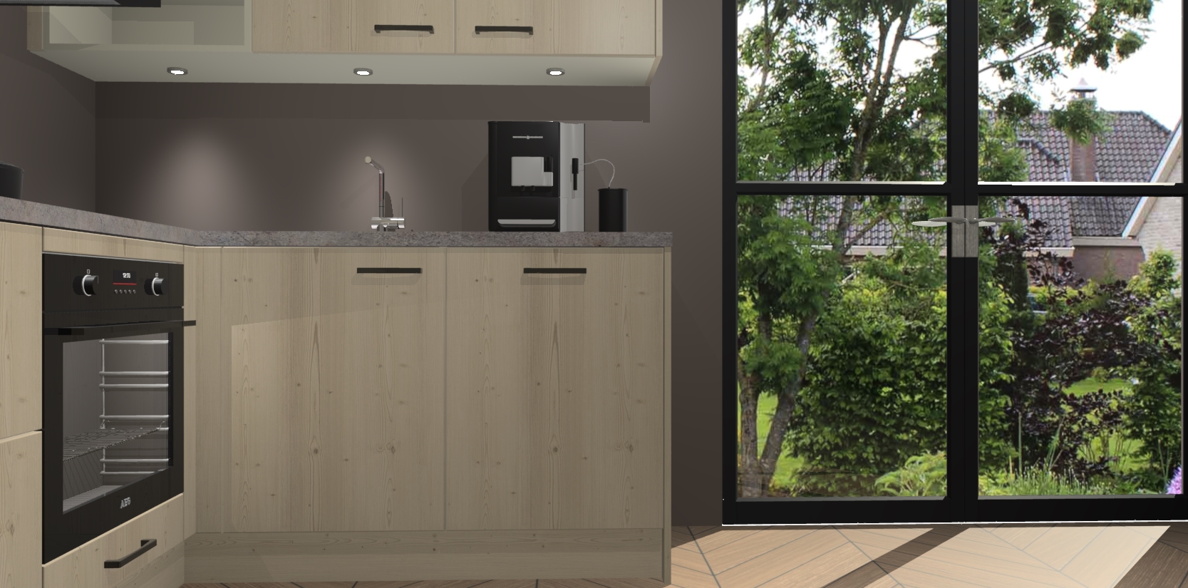 Wauw, dit is de Vuren keuken Pilsen! U kunt gerust zeggen dat u elegantie combineert met functionaliteit met deze keuken. Met een modern en chique ontwerp is de keuken precies wat u nodig heeft om uw ruimte te verfraaien. De binnenzijde van de kasten is in dezelfde donkere kleur als de buitenzijde voor een uniforme look, compleet met softclose-kasten die stil sluiten.