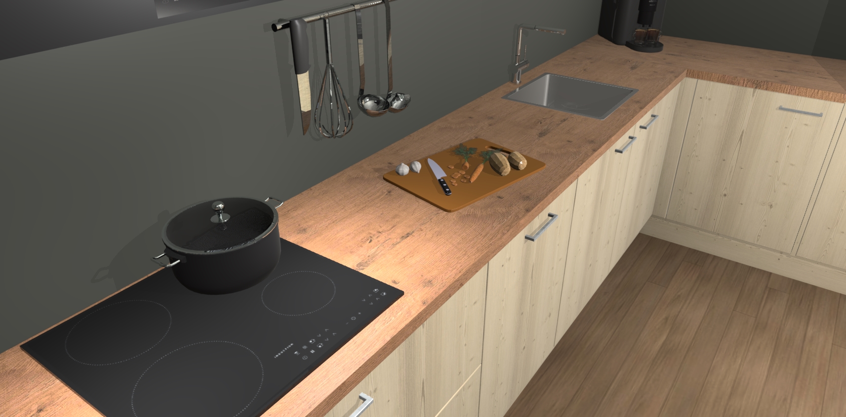 - Bij een hoekwerkblad zijn de hoeken in gevreesd en op maat gemaakt