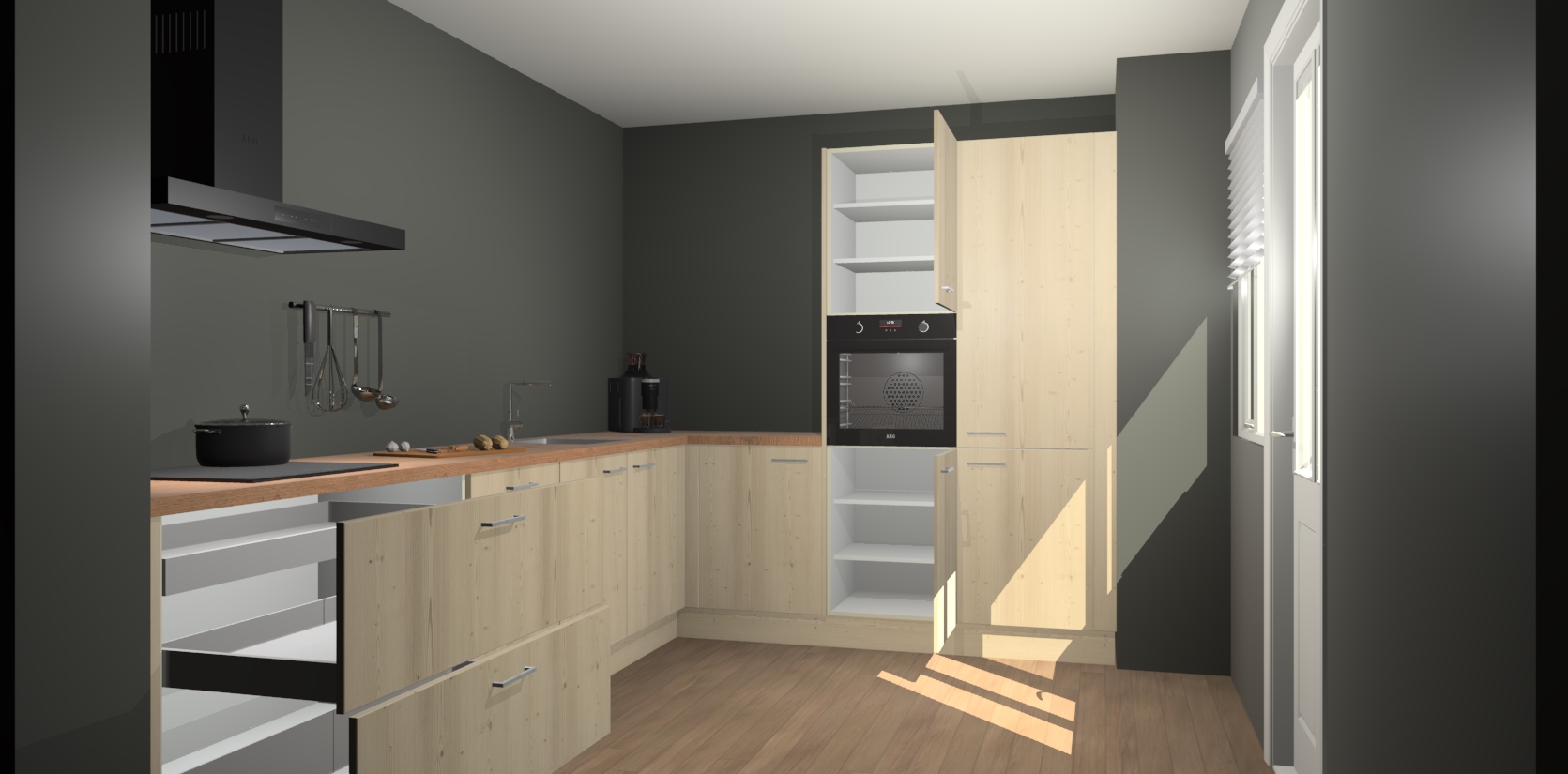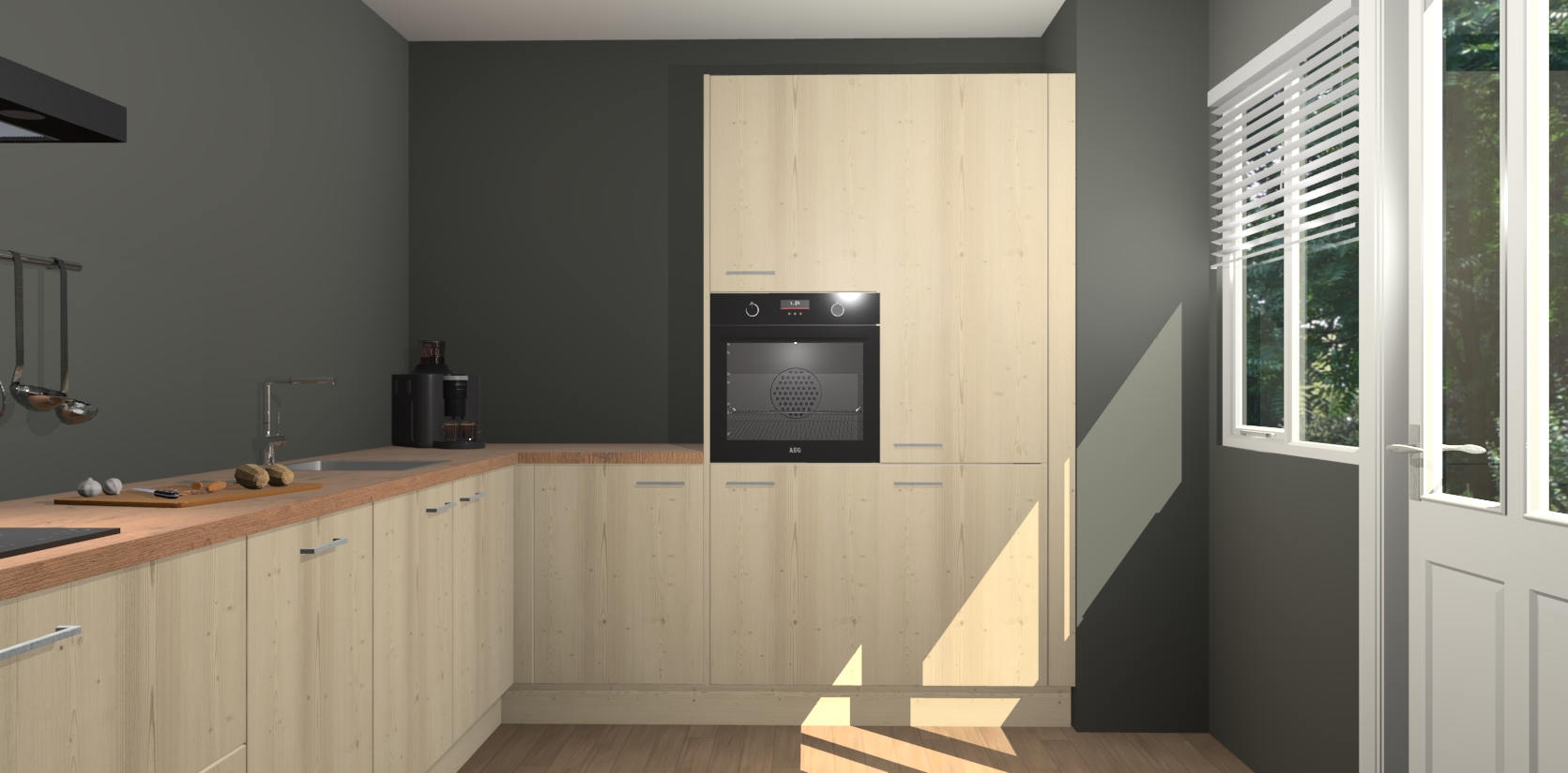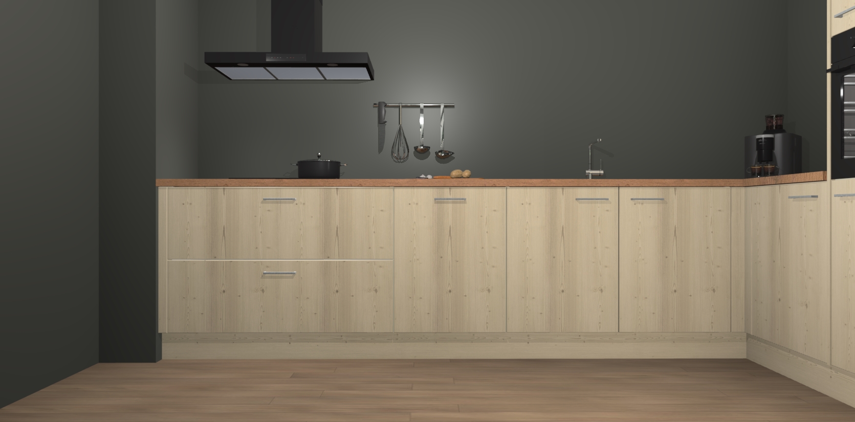 Welkom bij de Vuren keuken Portland. Deze prachtige keuken zal de komende jaren het middelpunt van de belangstelling in uw huis zijn. Uitgerust met vijf inbouwapparaten komt u nooit kookgereedschap tekort. Bovendien geeft de warme houtlook elke ruimte een uitnodigende en tijdloze uitstraling.