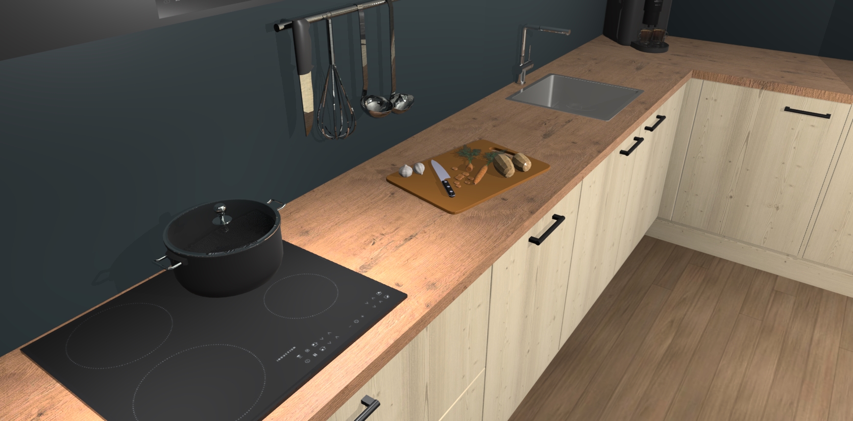 - Bij een hoekwerkblad zijn de hoeken in gevreesd en op maat gemaakt