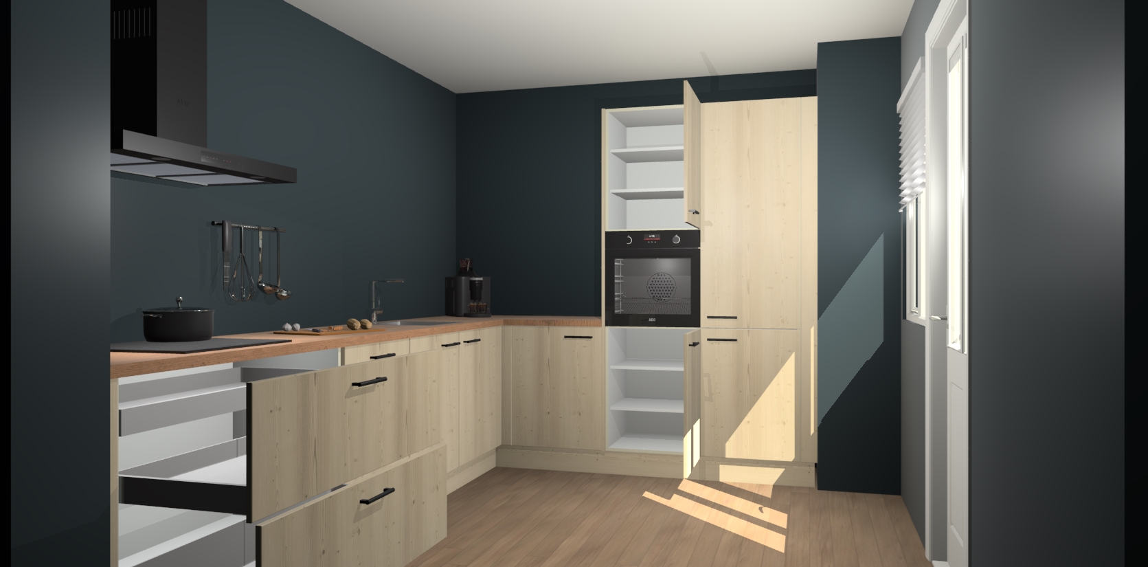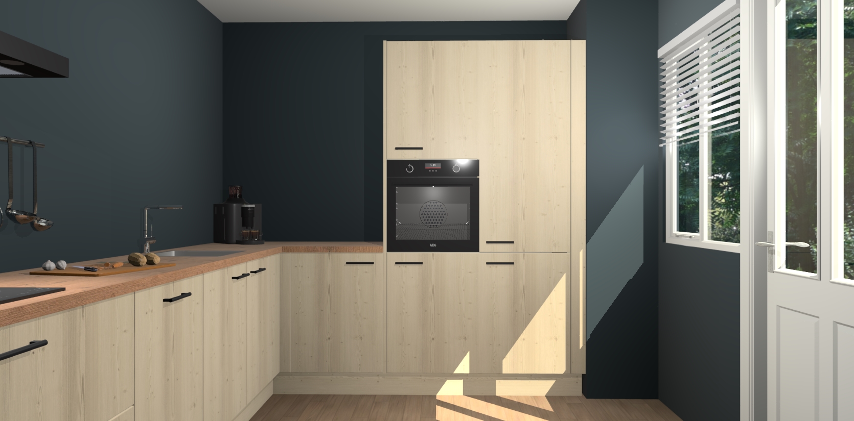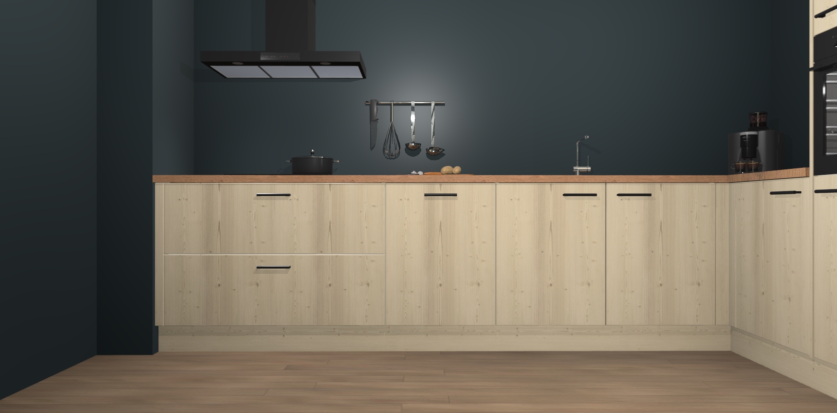 Welkom bij de Vuren keuken Portland. Deze prachtige keuken zal de komende jaren het middelpunt van de belangstelling in uw huis zijn. Uitgerust met vijf inbouwapparaten komt u nooit kookgereedschap tekort. Bovendien geeft de warme houtlook elke ruimte een uitnodigende en tijdloze uitstraling.