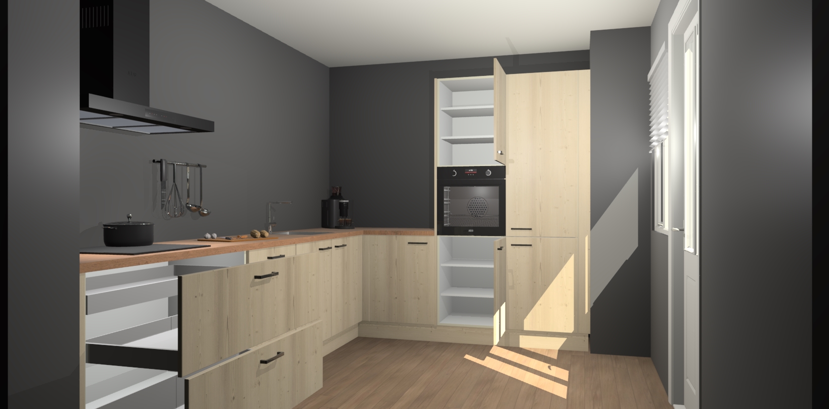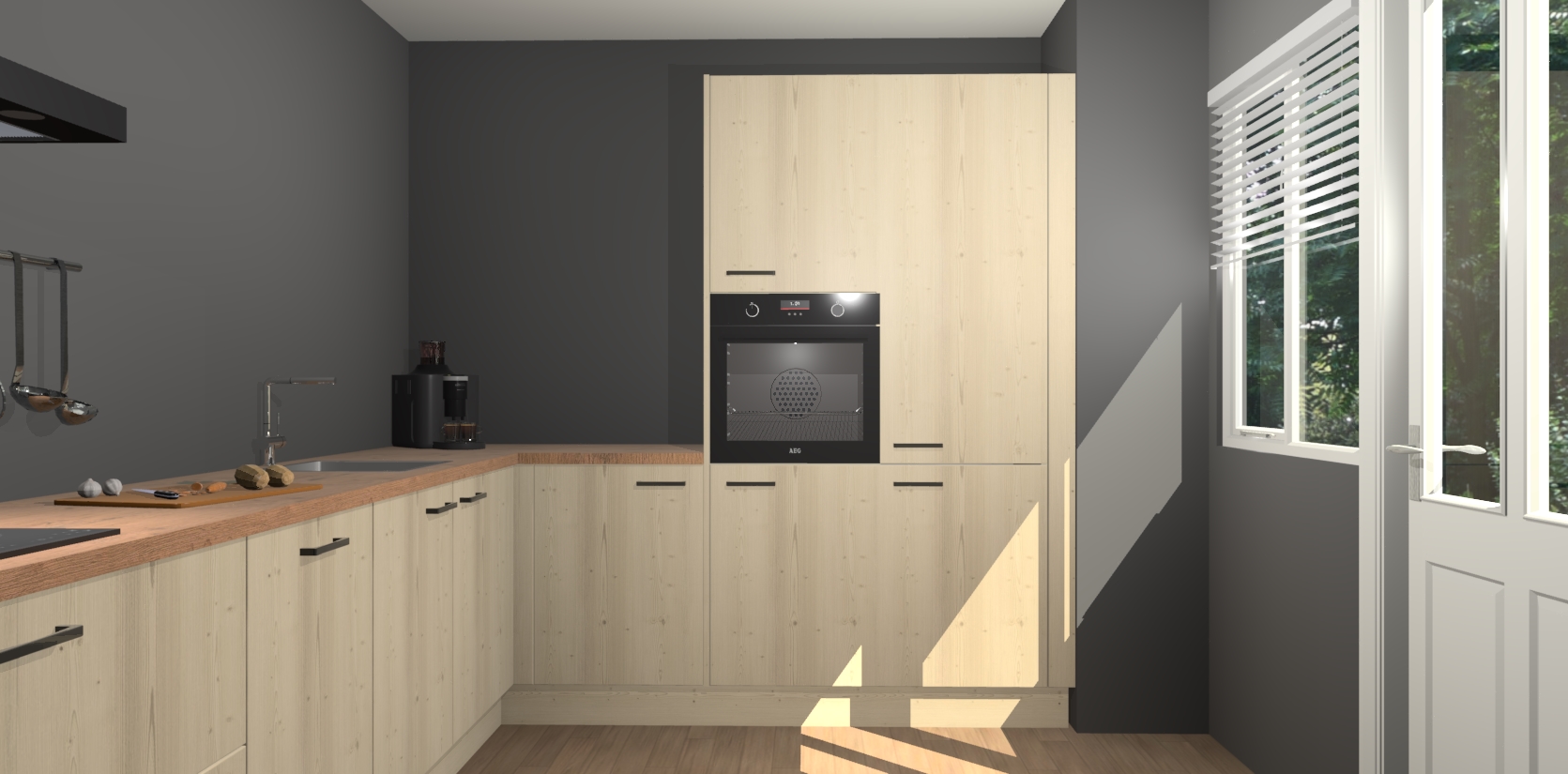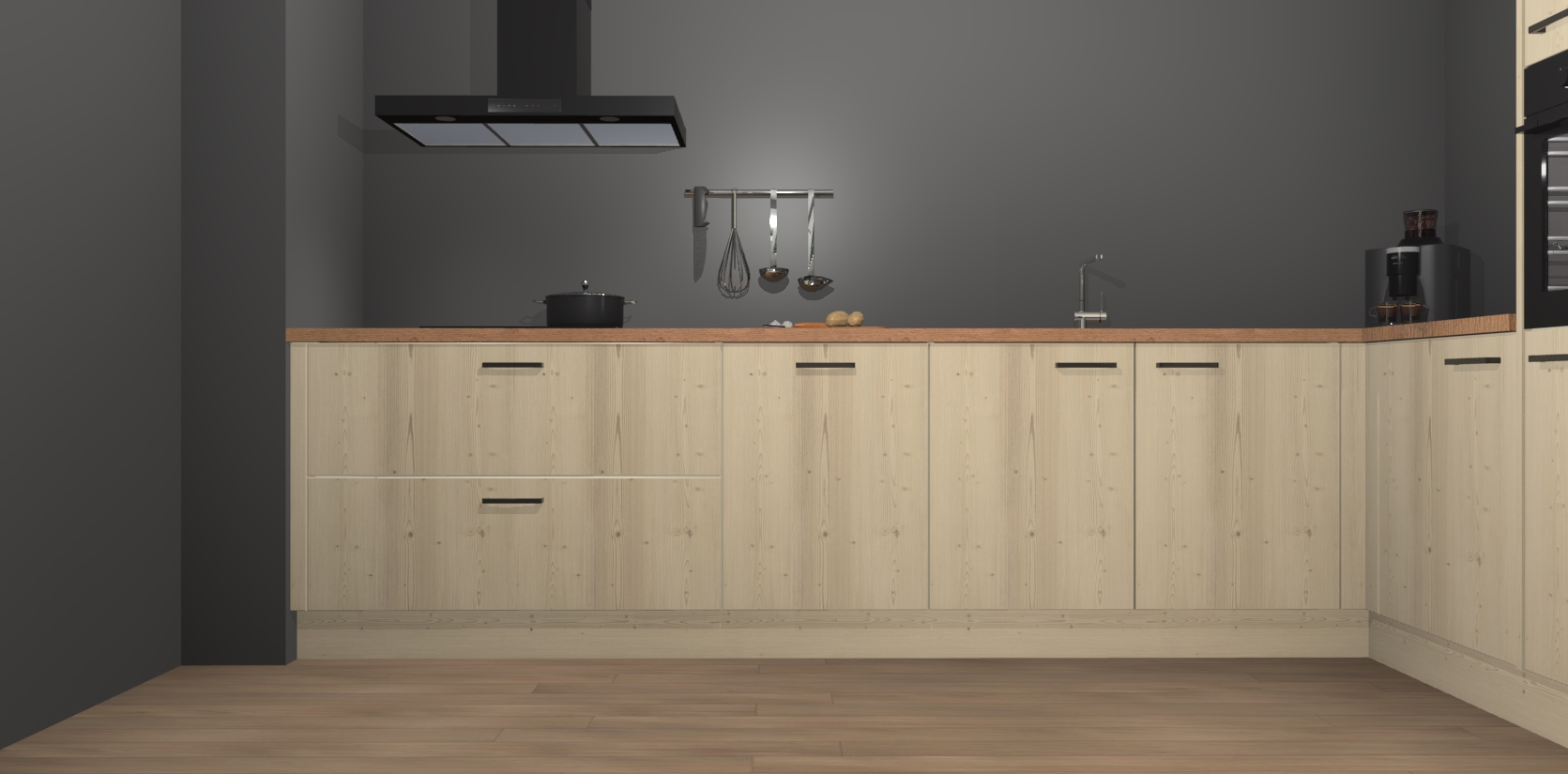 Welkom bij de Vuren keuken Portland. Deze prachtige keuken zal de komende jaren het middelpunt van de belangstelling in uw huis zijn. Uitgerust met vijf inbouwapparaten komt u nooit kookgereedschap tekort. Bovendien geeft de warme houtlook elke ruimte een uitnodigende en tijdloze uitstraling.