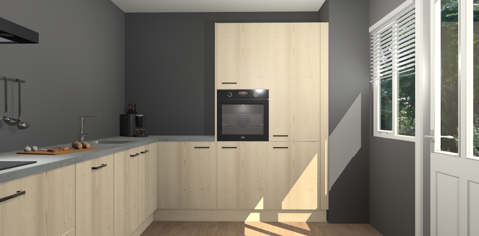 Welkom bij de Vuren keuken Portland. Deze prachtige keuken zal de komende jaren het middelpunt van de belangstelling in uw huis zijn. Uitgerust met vijf inbouwapparaten komt u nooit kookgereedschap tekort. Bovendien geeft de warme houtlook elke ruimte een uitnodigende en tijdloze uitstraling.