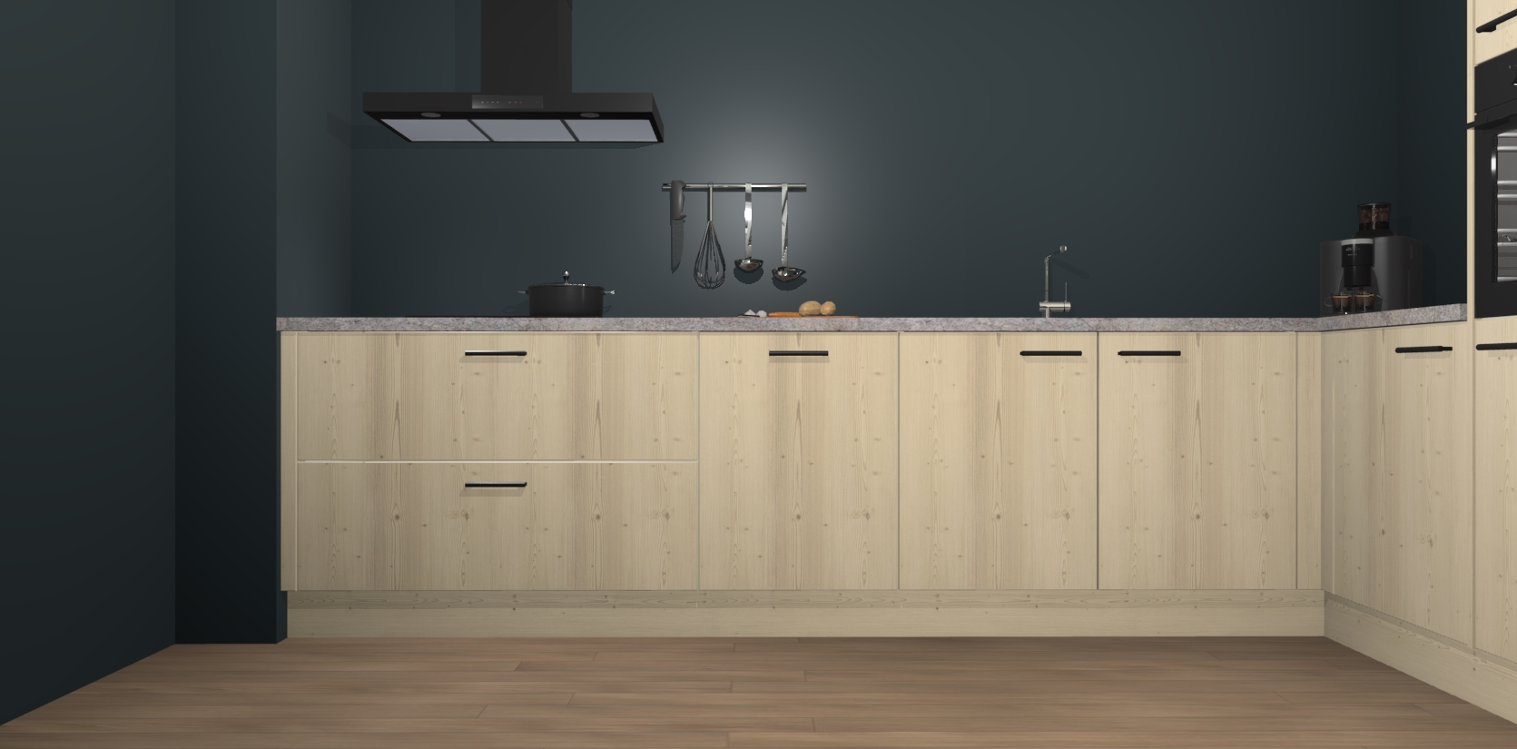 Welkom bij de Vuren keuken Portland. Deze prachtige keuken zal de komende jaren het middelpunt van de belangstelling in uw huis zijn. Uitgerust met vijf inbouwapparaten komt u nooit kookgereedschap tekort. Bovendien geeft de warme houtlook elke ruimte een uitnodigende en tijdloze uitstraling.