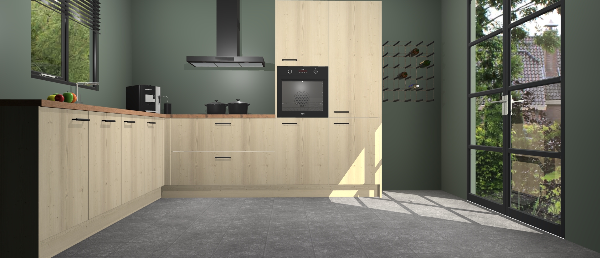 De Vuren keuken Porto heeft 5 ingebouwde apparaten - een oven, inductiekookplaat, afzuigkap, vaatwasser en koelkast - waarmee u in een handomdraai heerlijke gerechten bereidt. Soft-close deuren zorgen voor nog meer functionaliteit en gemak. En dit alles voor een onverslaanbaar vaste prijs. En als u nu bestelt, duurt de levering maar 7 weken! Wat nog ongelooflijker is, is dat onze kasten voor gemonteerd worden geleverd.