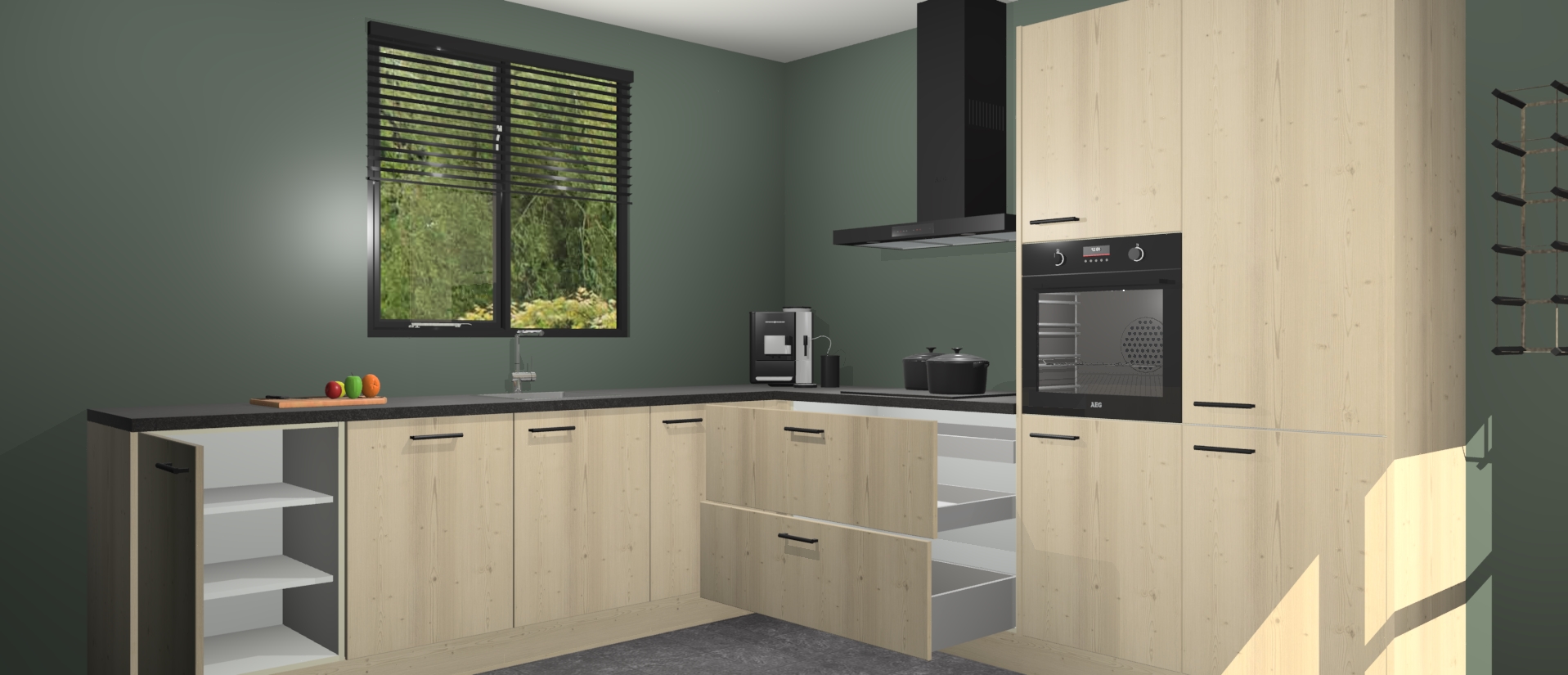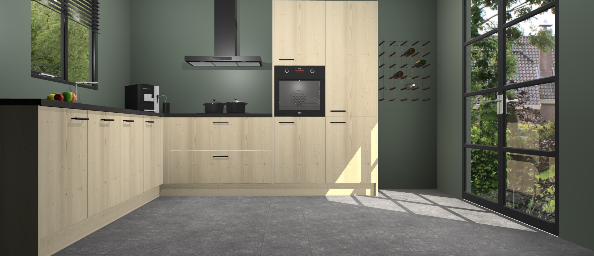 De Vuren keuken Porto heeft 5 ingebouwde apparaten - een oven, inductiekookplaat, afzuigkap, vaatwasser en koelkast - waarmee u in een handomdraai heerlijke gerechten bereidt. Soft-close deuren zorgen voor nog meer functionaliteit en gemak. En dit alles voor een onverslaanbaar vaste prijs. En als u nu bestelt, duurt de levering maar 7 weken! Wat nog ongelooflijker is, is dat onze kasten voor gemonteerd worden geleverd.