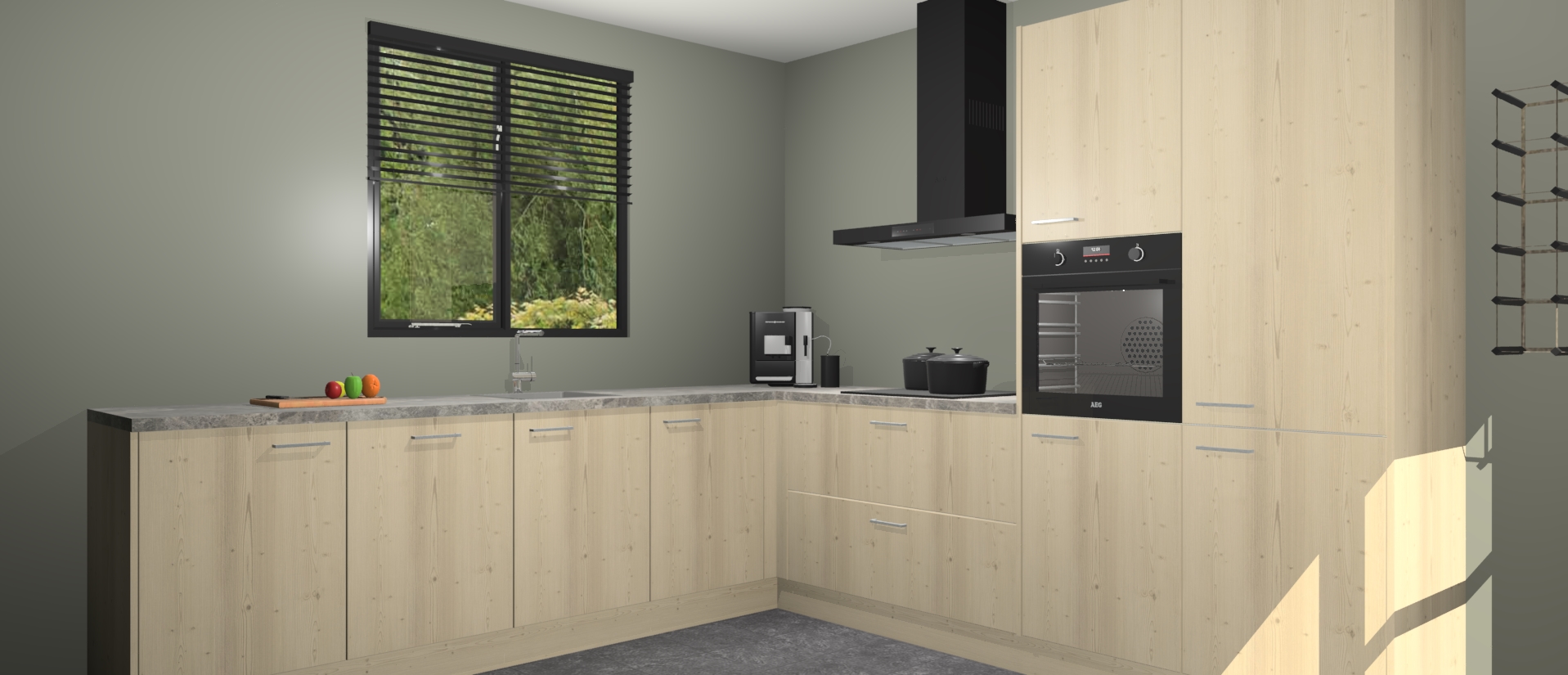 De Vuren keuken Porto heeft 5 ingebouwde apparaten - een oven, inductiekookplaat, afzuigkap, vaatwasser en koelkast - waarmee u in een handomdraai heerlijke gerechten bereidt. Soft-close deuren zorgen voor nog meer functionaliteit en gemak. En dit alles voor een onverslaanbaar vaste prijs. En als u nu bestelt, duurt de levering maar 7 weken! Wat nog ongelooflijker is, is dat onze kasten voor gemonteerd worden geleverd.
