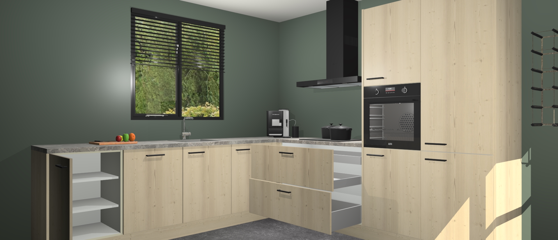 De Vuren keuken Porto heeft 5 ingebouwde apparaten - een oven, inductiekookplaat, afzuigkap, vaatwasser en koelkast - waarmee u in een handomdraai heerlijke gerechten bereidt. Soft-close deuren zorgen voor nog meer functionaliteit en gemak. En dit alles voor een onverslaanbaar vaste prijs. En als u nu bestelt, duurt de levering maar 7 weken! Wat nog ongelooflijker is, is dat onze kasten voor gemonteerd worden geleverd.