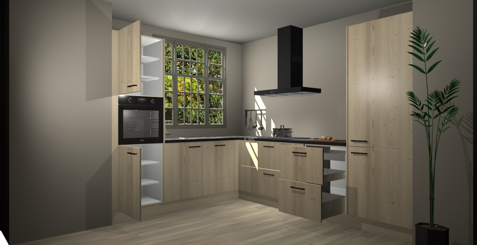 Met een modern, tijdloos design en ruime opslagruimte, zult u zich in no-time thuis voelen in uw nieuwe keuken. Uw leven wordt eenvoudiger met de soft-close deuren die voor het ultieme stille comfort zorgen - geen geluid dat u stoort terwijl u kookt. Ook is de keuken voorzien van 5 ingebouwde apparaten: een oven, inductie kookplaat, afzuigkap, vaatwasser en koelkast. Deze kunnen gemakkelijk na bestelling worden bijgewerkt naar AEG - waardoor uw luxe ervaring compleet is.