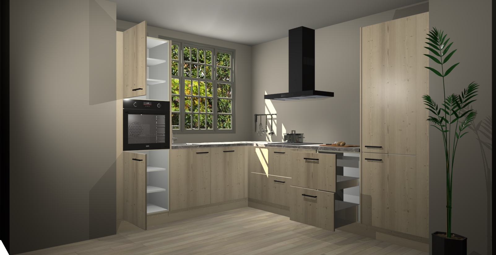 Met een modern, tijdloos design en ruime opslagruimte, zult u zich in no-time thuis voelen in uw nieuwe keuken. Uw leven wordt eenvoudiger met de soft-close deuren die voor het ultieme stille comfort zorgen - geen geluid dat u stoort terwijl u kookt. Ook is de keuken voorzien van 5 ingebouwde apparaten: een oven, inductie kookplaat, afzuigkap, vaatwasser en koelkast. Deze kunnen gemakkelijk na bestelling worden bijgewerkt naar AEG - waardoor uw luxe ervaring compleet is.