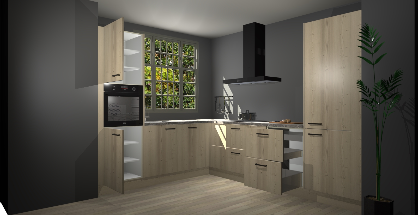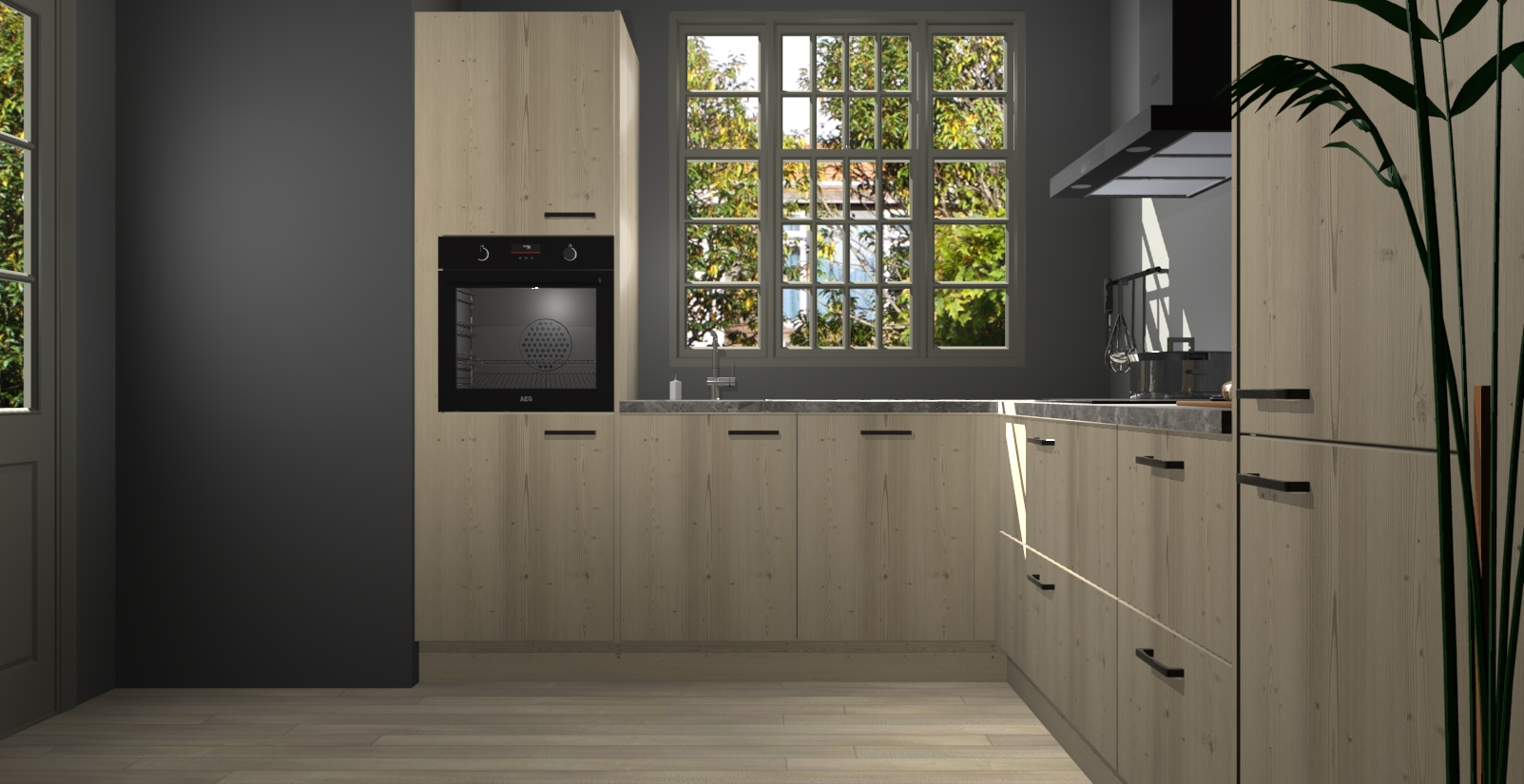Met een modern, tijdloos design en ruime opslagruimte, zult u zich in no-time thuis voelen in uw nieuwe keuken. Uw leven wordt eenvoudiger met de soft-close deuren die voor het ultieme stille comfort zorgen - geen geluid dat u stoort terwijl u kookt. Ook is de keuken voorzien van 5 ingebouwde apparaten: een oven, inductie kookplaat, afzuigkap, vaatwasser en koelkast. Deze kunnen gemakkelijk na bestelling worden bijgewerkt naar AEG - waardoor uw luxe ervaring compleet is.