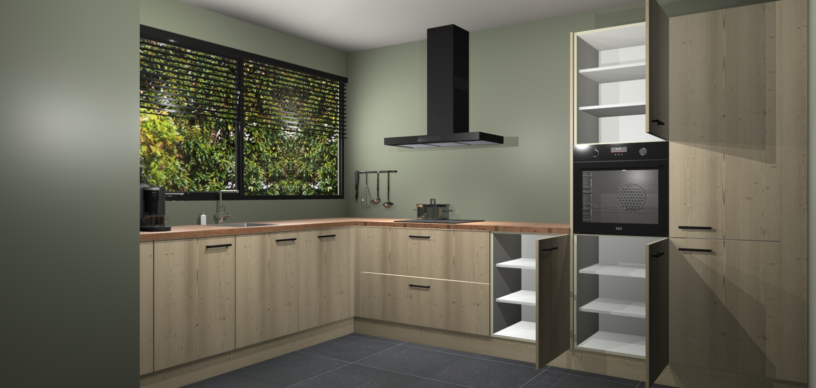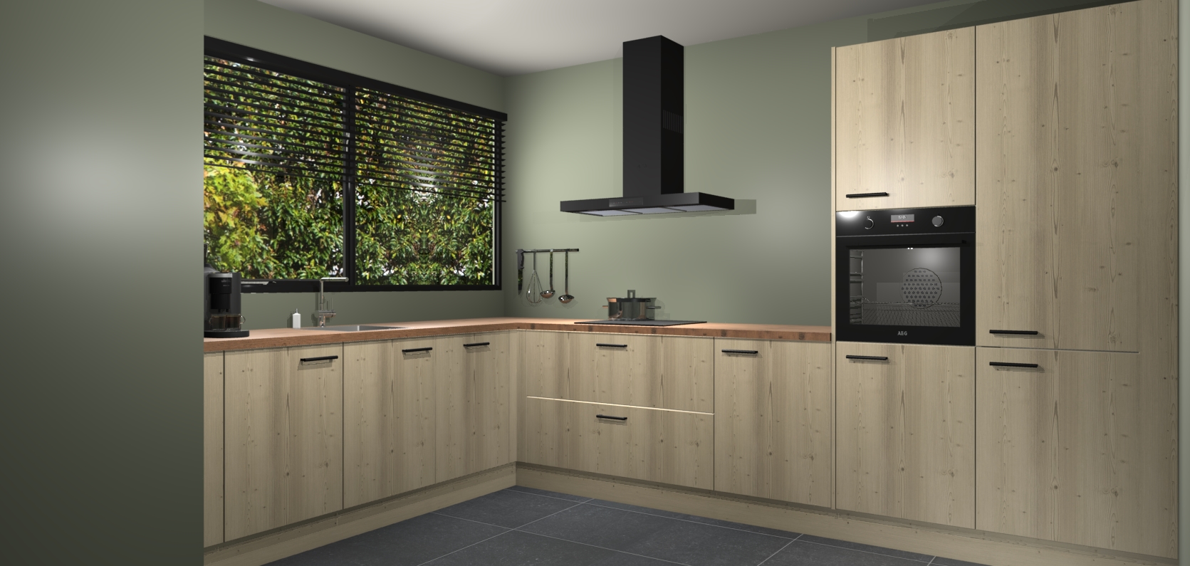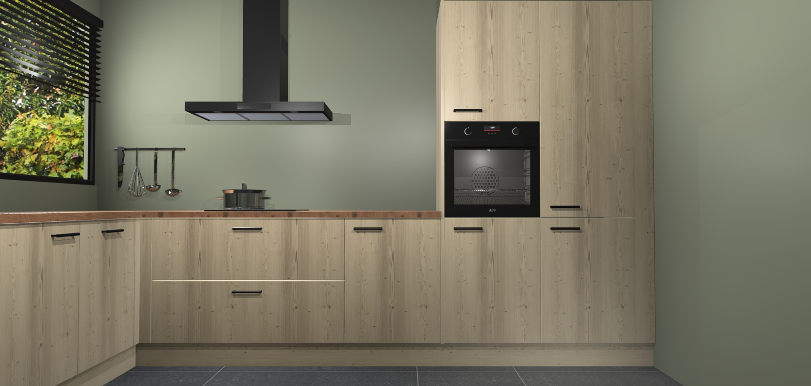 Met een modern, tijdloos design en ruime opslagruimte, zult u zich in no-time thuis voelen in uw nieuwe keuken. Uw leven wordt eenvoudiger met de soft-close deuren die voor het ultieme stille comfort zorgen - geen geluid dat u stoort terwijl u kookt. Ook is de keuken voorzien van 5 ingebouwde apparaten: een oven, inductie kookplaat, afzuigkap, vaatwasser en koelkast. Deze kunnen gemakkelijk na bestelling worden bijgewerkt naar AEG - waardoor uw luxe ervaring compleet is.