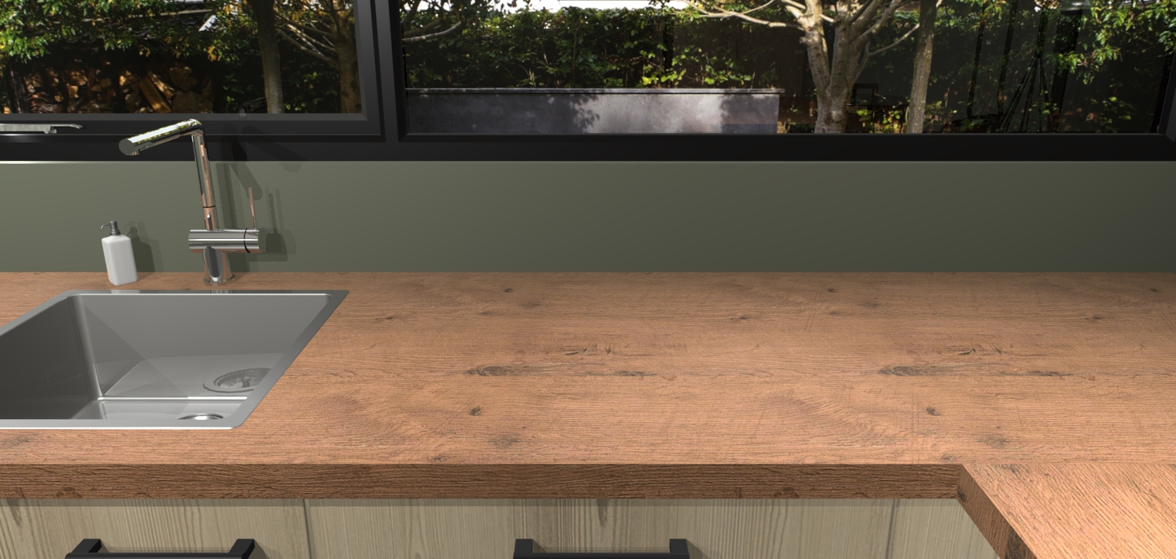 - Bij een hoekwerkblad zijn de hoeken in gevreesd en op maat gemaakt