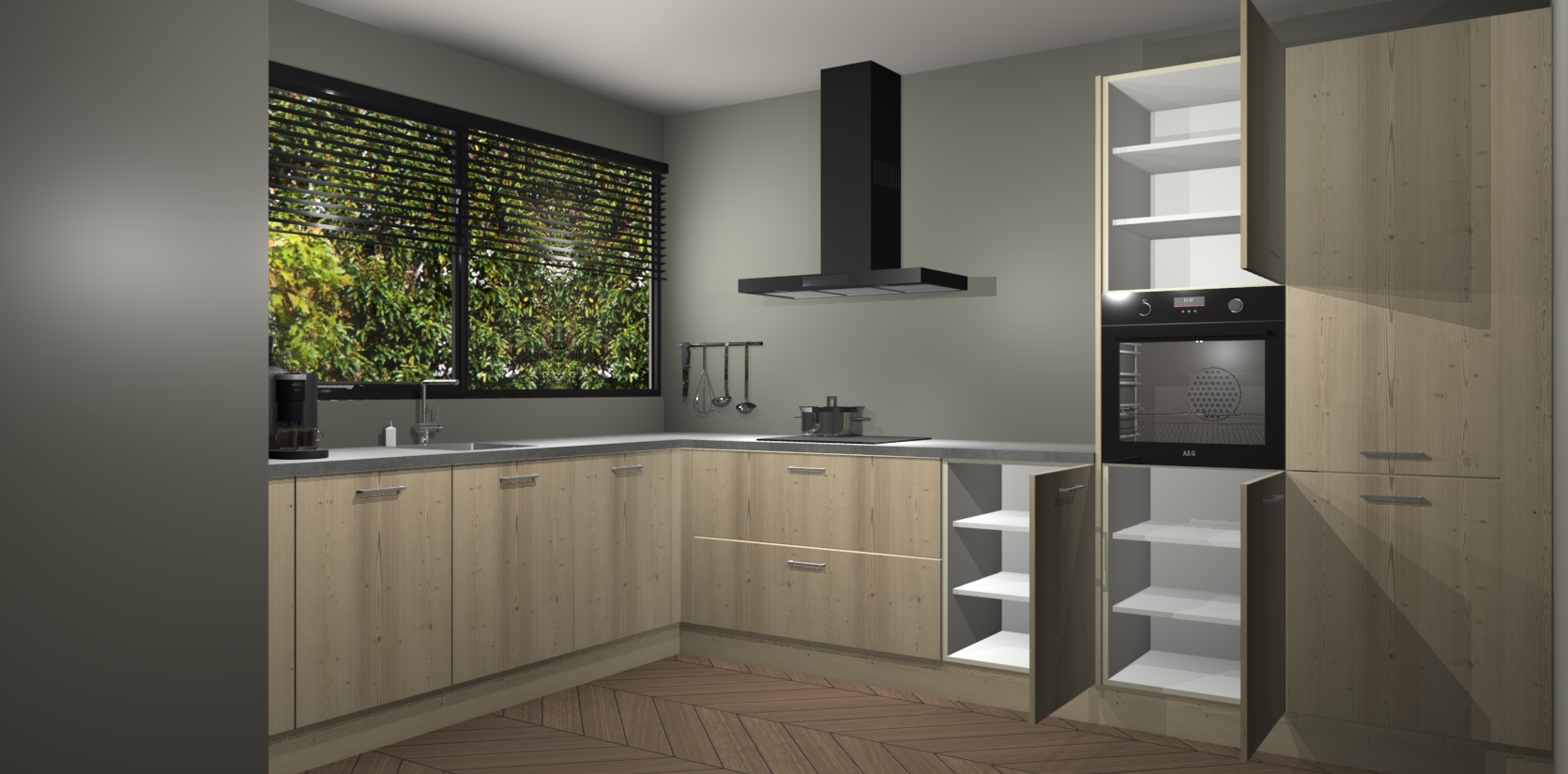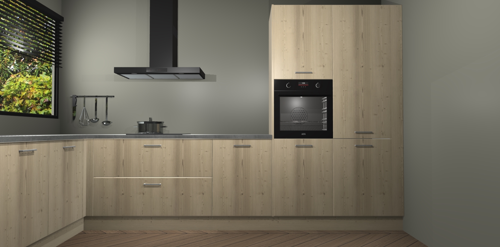 Met een modern, tijdloos design en ruime opslagruimte, zult u zich in no-time thuis voelen in uw nieuwe keuken. Uw leven wordt eenvoudiger met de soft-close deuren die voor het ultieme stille comfort zorgen - geen geluid dat u stoort terwijl u kookt. Ook is de keuken voorzien van 5 ingebouwde apparaten: een oven, inductie kookplaat, afzuigkap, vaatwasser en koelkast. Deze kunnen gemakkelijk na bestelling worden bijgewerkt naar AEG - waardoor uw luxe ervaring compleet is.
