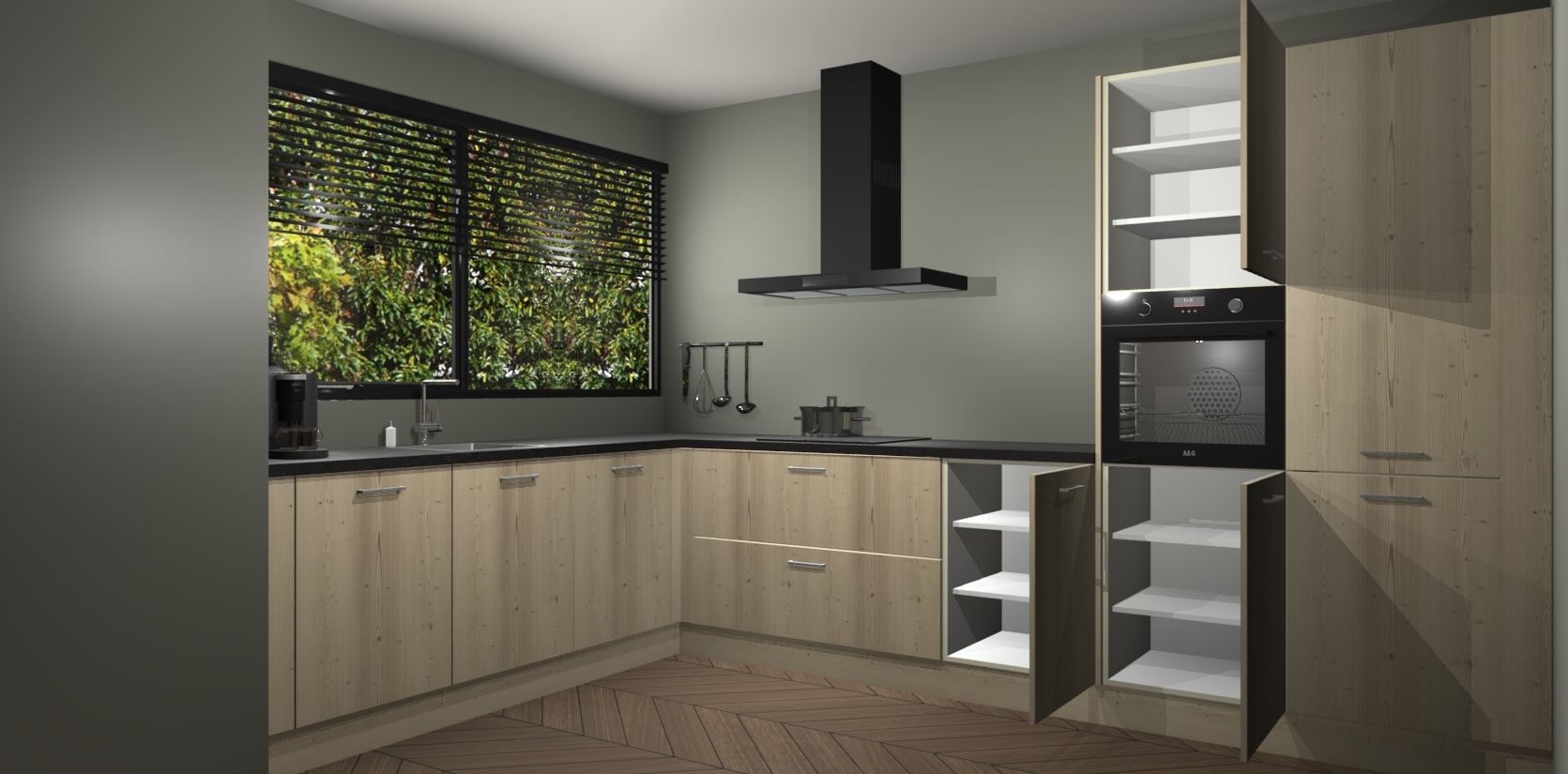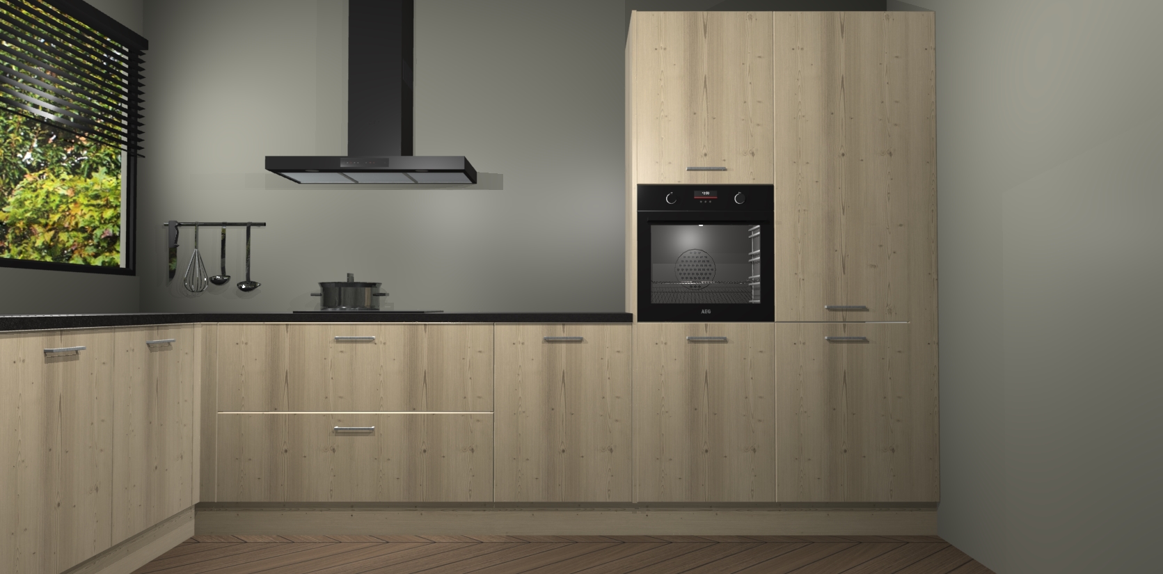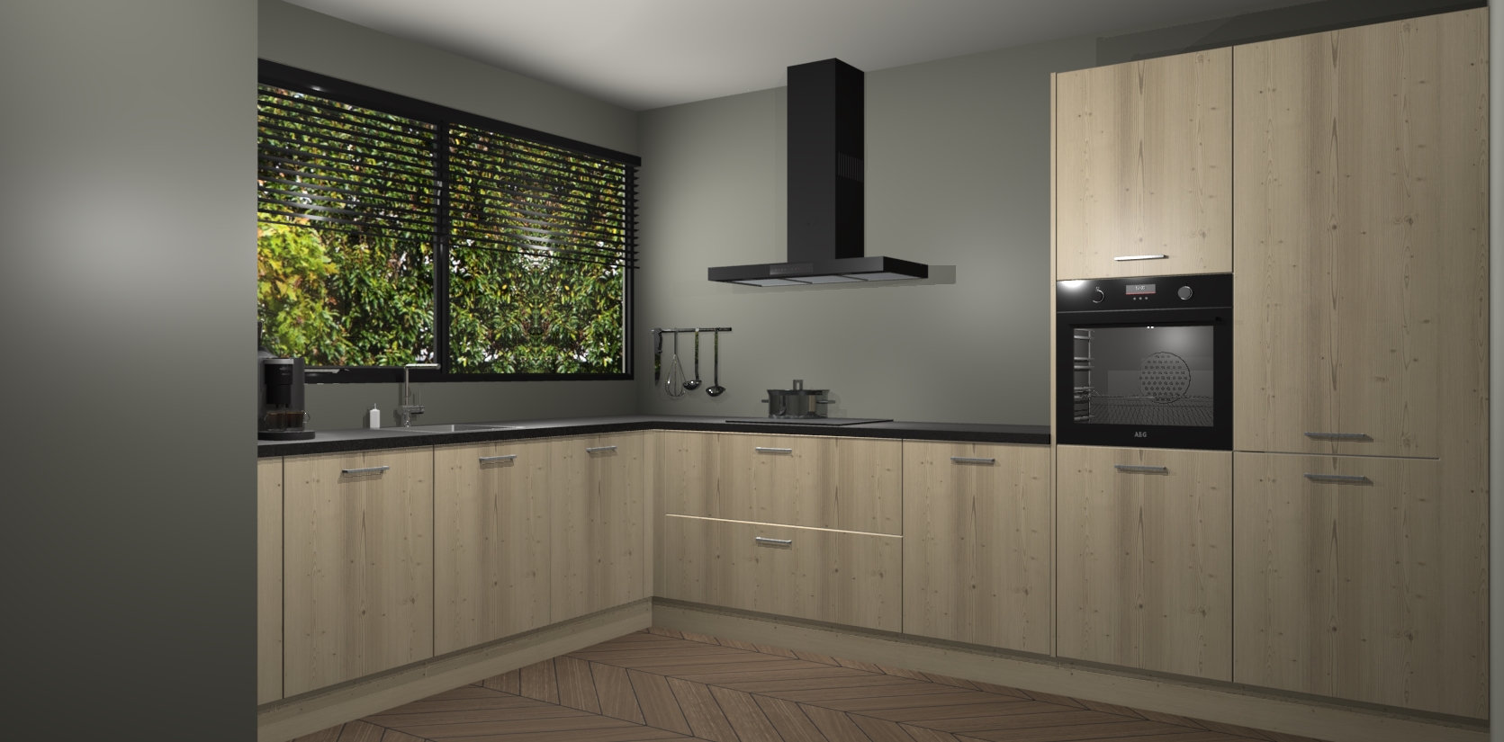 Met een modern, tijdloos design en ruime opslagruimte, zult u zich in no-time thuis voelen in uw nieuwe keuken. Uw leven wordt eenvoudiger met de soft-close deuren die voor het ultieme stille comfort zorgen - geen geluid dat u stoort terwijl u kookt. Ook is de keuken voorzien van 5 ingebouwde apparaten: een oven, inductie kookplaat, afzuigkap, vaatwasser en koelkast. Deze kunnen gemakkelijk na bestelling worden bijgewerkt naar AEG - waardoor uw luxe ervaring compleet is.