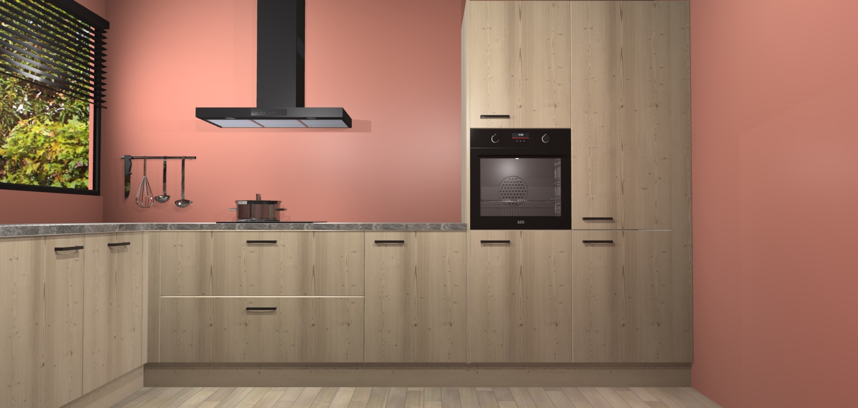 Met een modern, tijdloos design en ruime opslagruimte, zult u zich in no-time thuis voelen in uw nieuwe keuken. Uw leven wordt eenvoudiger met de soft-close deuren die voor het ultieme stille comfort zorgen - geen geluid dat u stoort terwijl u kookt. Ook is de keuken voorzien van 5 ingebouwde apparaten: een oven, inductie kookplaat, afzuigkap, vaatwasser en koelkast. Deze kunnen gemakkelijk na bestelling worden bijgewerkt naar AEG - waardoor uw luxe ervaring compleet is.