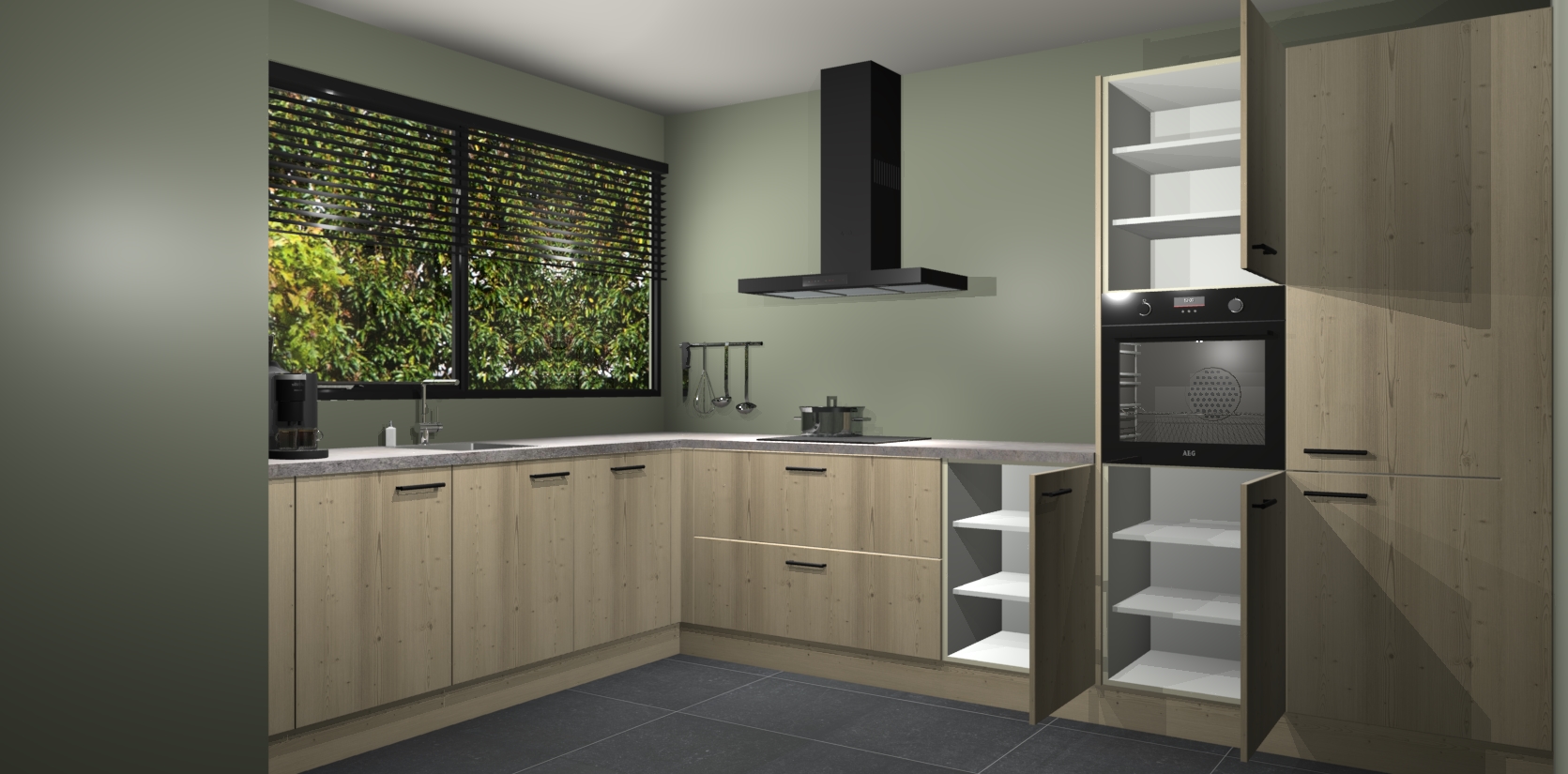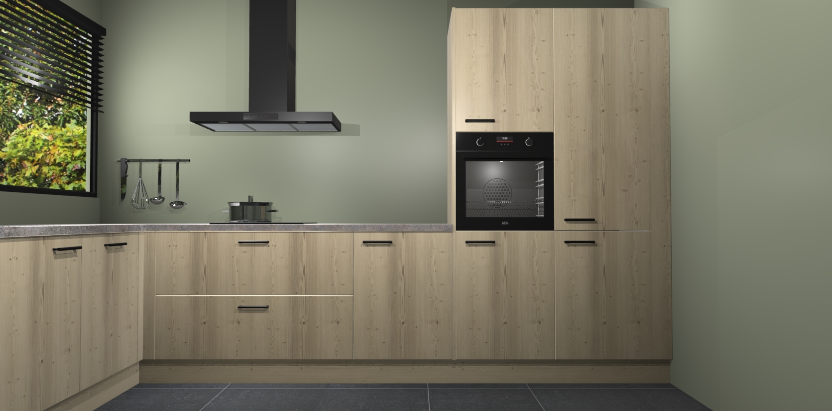 Met een modern, tijdloos design en ruime opslagruimte, zult u zich in no-time thuis voelen in uw nieuwe keuken. Uw leven wordt eenvoudiger met de soft-close deuren die voor het ultieme stille comfort zorgen - geen geluid dat u stoort terwijl u kookt. Ook is de keuken voorzien van 5 ingebouwde apparaten: een oven, inductie kookplaat, afzuigkap, vaatwasser en koelkast. Deze kunnen gemakkelijk na bestelling worden bijgewerkt naar AEG - waardoor uw luxe ervaring compleet is.