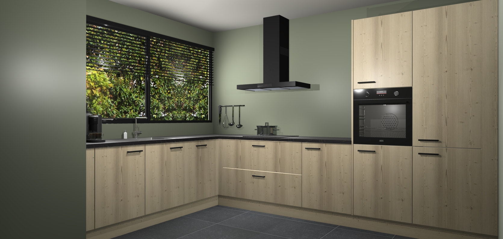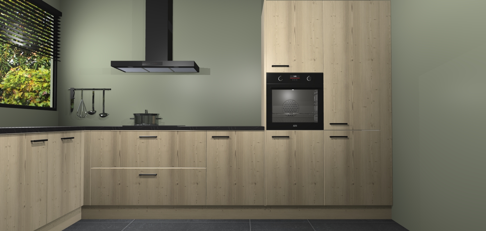 Met een modern, tijdloos design en ruime opslagruimte, zult u zich in no-time thuis voelen in uw nieuwe keuken. Uw leven wordt eenvoudiger met de soft-close deuren die voor het ultieme stille comfort zorgen - geen geluid dat u stoort terwijl u kookt. Ook is de keuken voorzien van 5 ingebouwde apparaten: een oven, inductie kookplaat, afzuigkap, vaatwasser en koelkast. Deze kunnen gemakkelijk na bestelling worden bijgewerkt naar AEG - waardoor uw luxe ervaring compleet is.