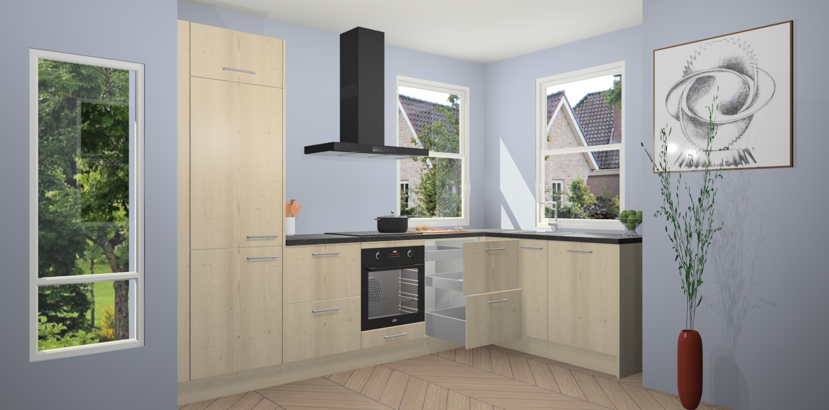 Welkom bij de Vuren keuken Salzburg! Met een chique combinatie van een prachtig houten werkblad, klassiek design en altijd concurrerende prijzen is de Vuren keuken Salzburg de keuken van uw dromen! Deze keuken is perfect voor alle huisformaten en decorstijlen en straalt stijl en verfijning uit. Van het tijdloze design tot de functionele functies, er is geen betere manier om de look van uw woon- of kookruimte te verbeteren.
