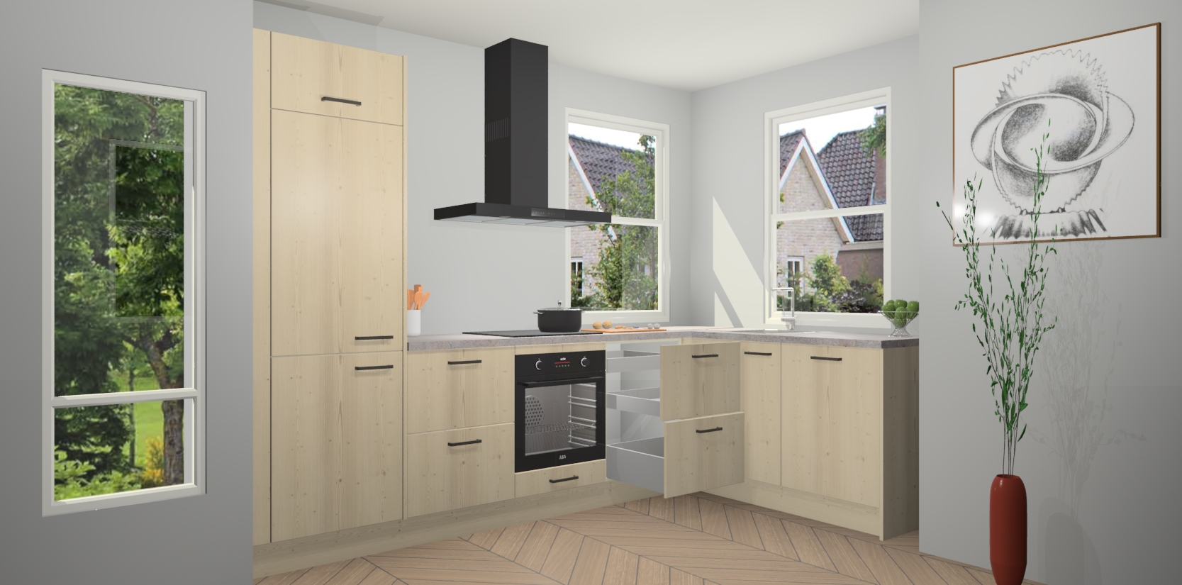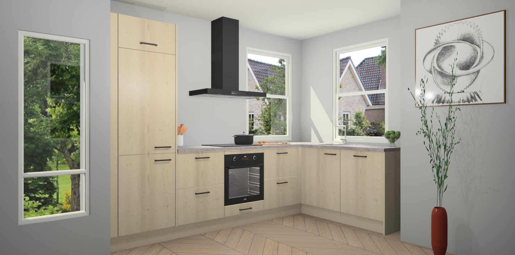 Welkom bij de Vuren keuken Salzburg! Met een chique combinatie van een prachtig houten werkblad, klassiek design en altijd concurrerende prijzen is de Vuren keuken Salzburg de keuken van uw dromen! Deze keuken is perfect voor alle huisformaten en decorstijlen en straalt stijl en verfijning uit. Van het tijdloze design tot de functionele functies, er is geen betere manier om de look van uw woon- of kookruimte te verbeteren.