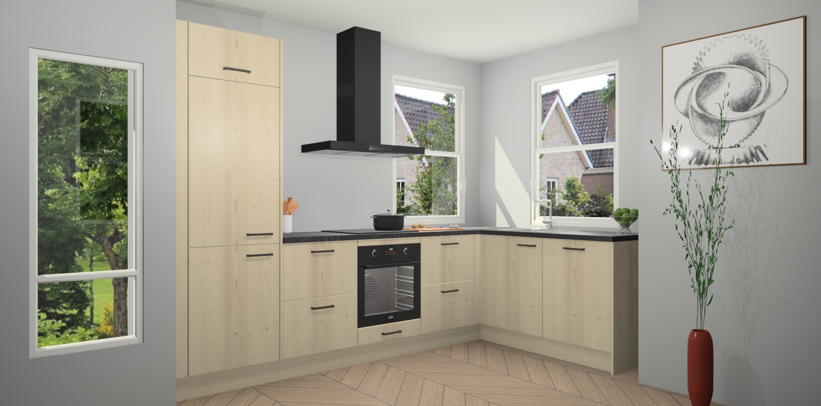 Welkom bij de Vuren keuken Salzburg! Met een chique combinatie van een prachtig houten werkblad, klassiek design en altijd concurrerende prijzen is de Vuren keuken Salzburg de keuken van uw dromen! Deze keuken is perfect voor alle huisformaten en decorstijlen en straalt stijl en verfijning uit. Van het tijdloze design tot de functionele functies, er is geen betere manier om de look van uw woon- of kookruimte te verbeteren.