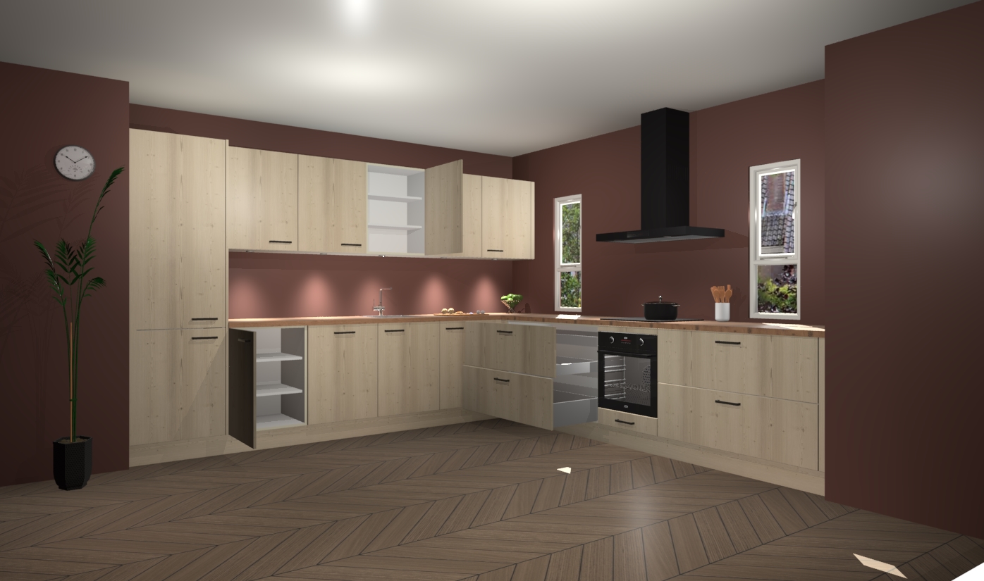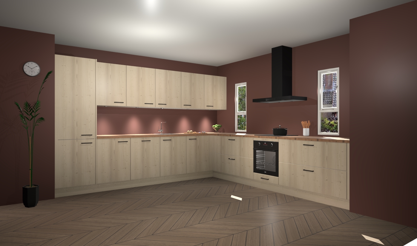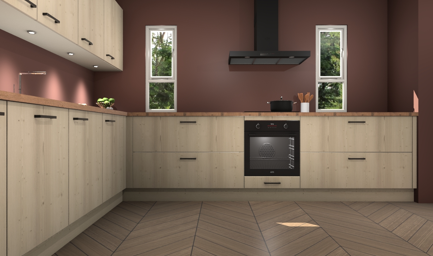 De vuren keuken is een ideale hoekkeuken en heeft alle functies en apparatuur die u maar nodig kunt hebben. Bij de bestelling krijgt u een oven, inductiekookplaat, afzuigkap, vaatwasser en koelkast - deze kunnen desgewenst eenvoudig worden uitgebreid naar AEG na bestellen. Elke kast wordt ook voor gemonteerd geleverd met soft close deuren die jarenlang gebruik beloven. Stelt u zich voor dat u geen gedoe heeft met vervelende montage - vanaf het moment dat u uw bestelling plaats, duurt het slechts 7 weken voor het bij u thuis geleverd wordt.