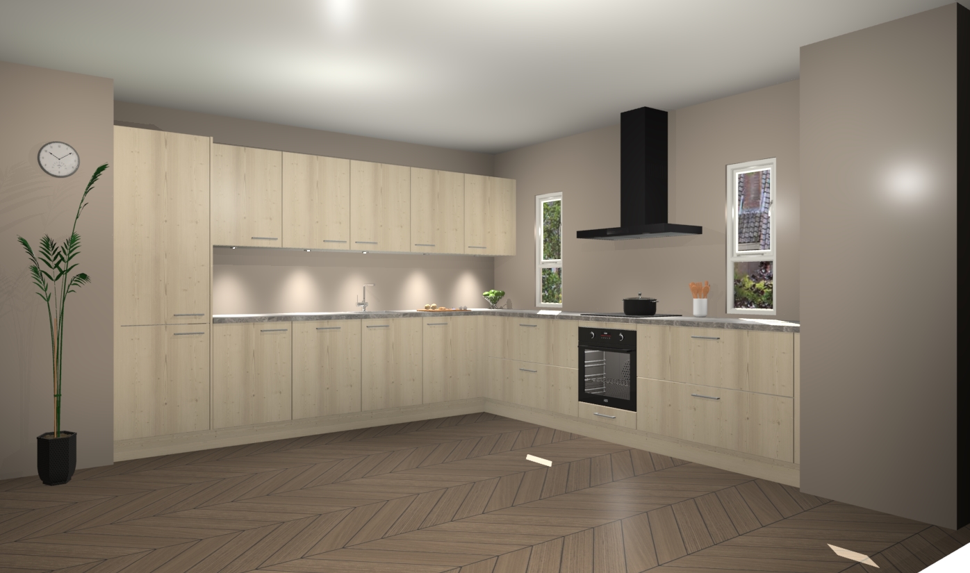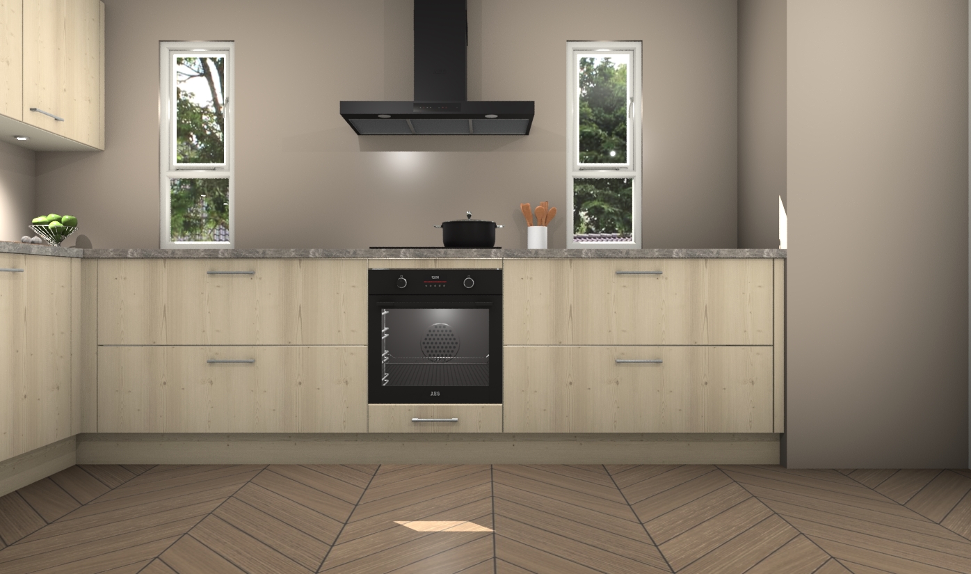 De vuren keuken is een ideale hoekkeuken en heeft alle functies en apparatuur die u maar nodig kunt hebben. Bij de bestelling krijgt u een oven, inductiekookplaat, afzuigkap, vaatwasser en koelkast - deze kunnen desgewenst eenvoudig worden uitgebreid naar AEG na bestellen. Elke kast wordt ook voor gemonteerd geleverd met soft close deuren die jarenlang gebruik beloven. Stelt u zich voor dat u geen gedoe heeft met vervelende montage - vanaf het moment dat u uw bestelling plaats, duurt het slechts 7 weken voor het bij u thuis geleverd wordt.