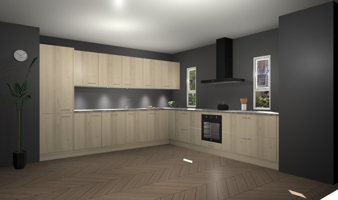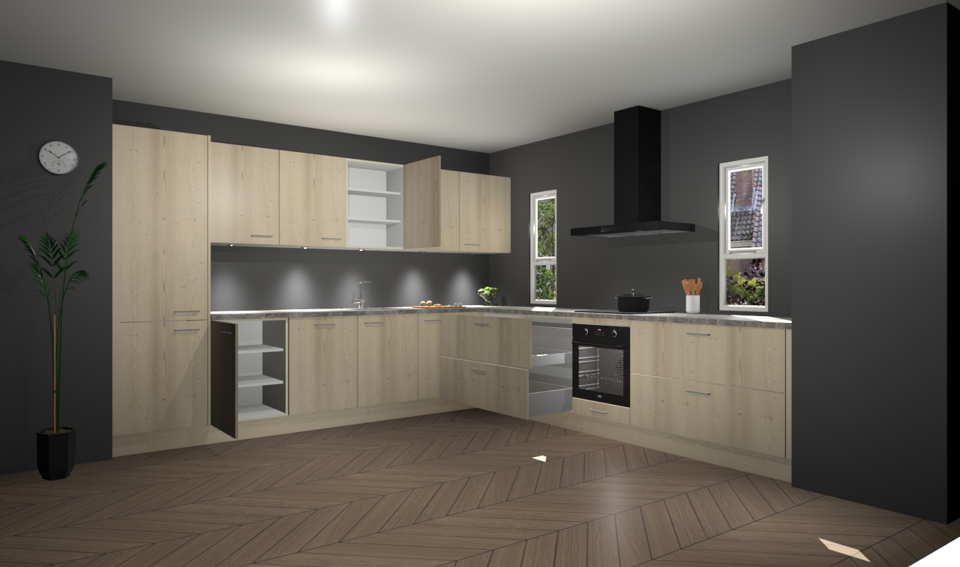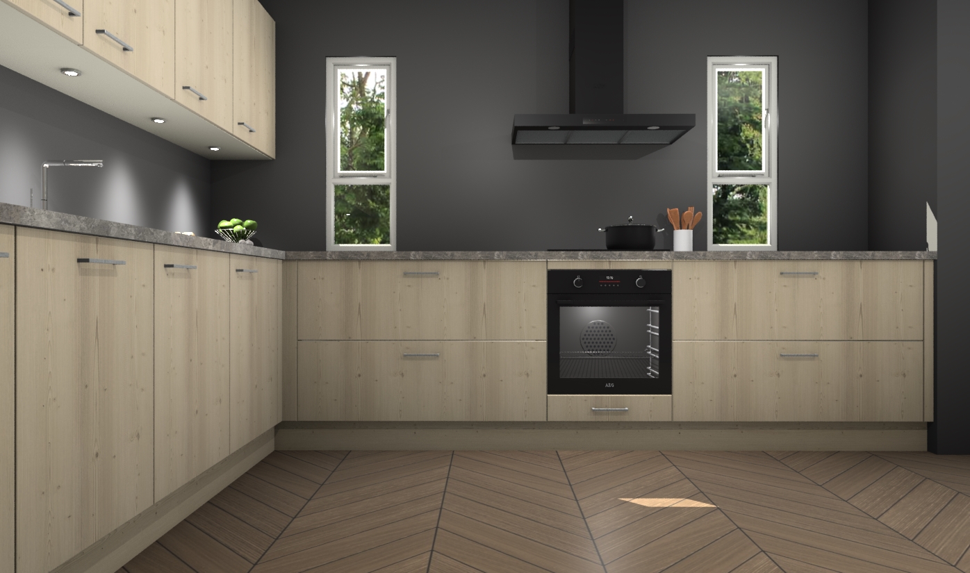 De vuren keuken is een ideale hoekkeuken en heeft alle functies en apparatuur die u maar nodig kunt hebben. Bij de bestelling krijgt u een oven, inductiekookplaat, afzuigkap, vaatwasser en koelkast - deze kunnen desgewenst eenvoudig worden uitgebreid naar AEG na bestellen. Elke kast wordt ook voor gemonteerd geleverd met soft close deuren die jarenlang gebruik beloven. Stelt u zich voor dat u geen gedoe heeft met vervelende montage - vanaf het moment dat u uw bestelling plaats, duurt het slechts 7 weken voor het bij u thuis geleverd wordt.