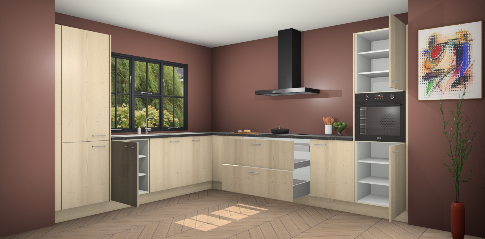 In deze box zijn alle kleuren verzameld van de deuren en werkbladen. Vraag de gratis kleurenbox aan en kijk thuis rustig verder!