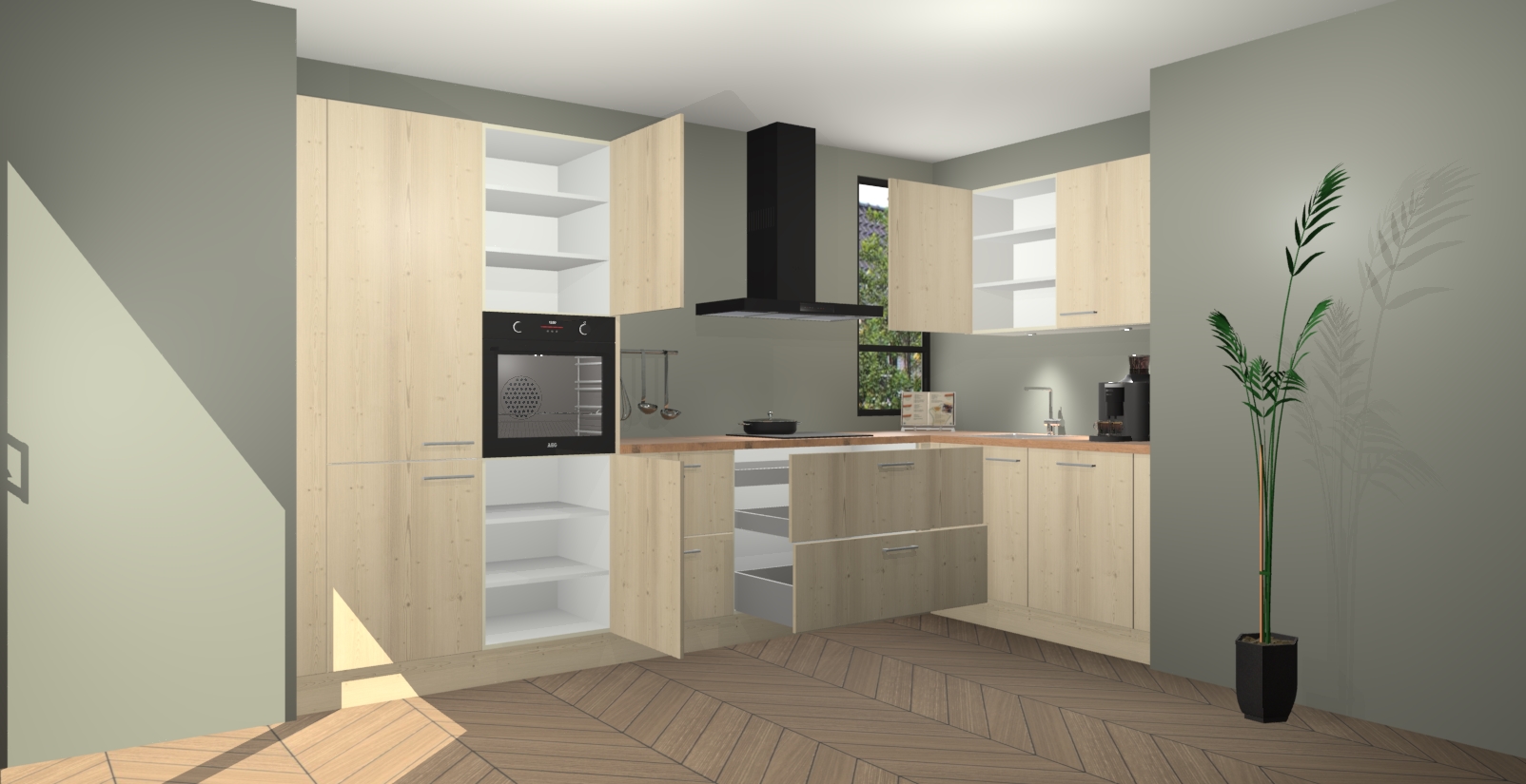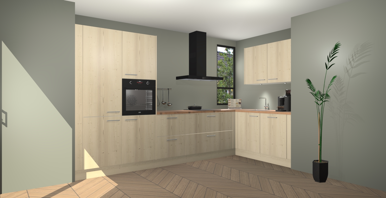 Welkom in uw nieuwe moderne keuken! Laat ons u voorstellen aan de Vuren keuken Vlaanderen . Deze prachtige hoekkeuken straalt exclusiviteit en luxe uit als geen ander. Het strakke design, de tijdloze kleuren en het model maken van deze keuken een moderne klassieker. En met voldoende opbergruimte heeft deze keuken echt voor ieder wat wils.