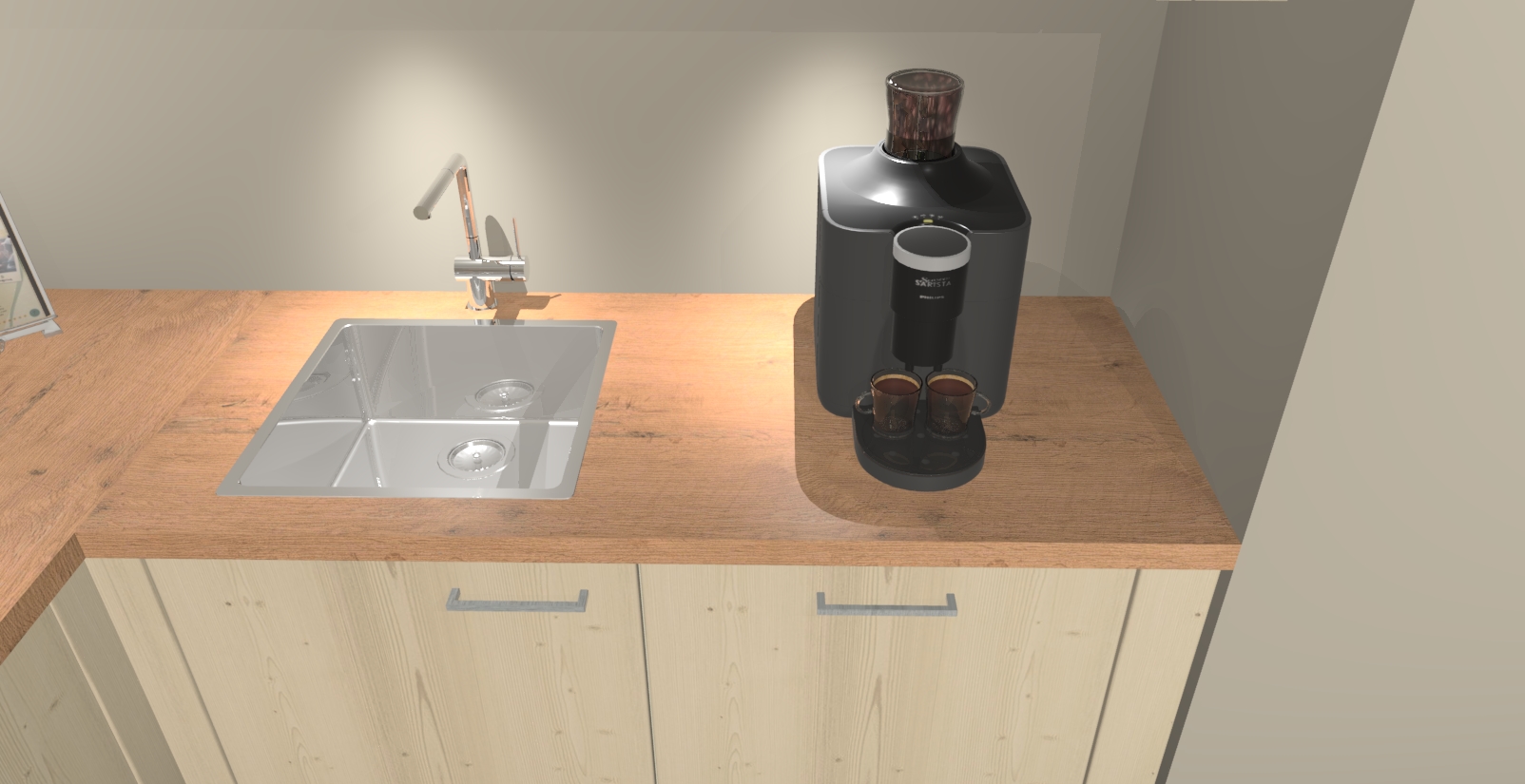 - De spoelbak is nog niet in gevreesd. Dit dient tijdens het werk gedaan te worden