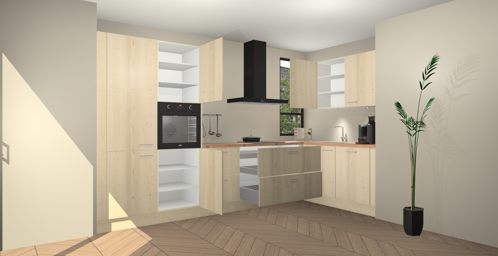 Welkom in uw nieuwe moderne keuken! Laat ons u voorstellen aan de Vuren keuken Vlaanderen . Deze prachtige hoekkeuken straalt exclusiviteit en luxe uit als geen ander. Het strakke design, de tijdloze kleuren en het model maken van deze keuken een moderne klassieker. En met voldoende opbergruimte heeft deze keuken echt voor ieder wat wils.
