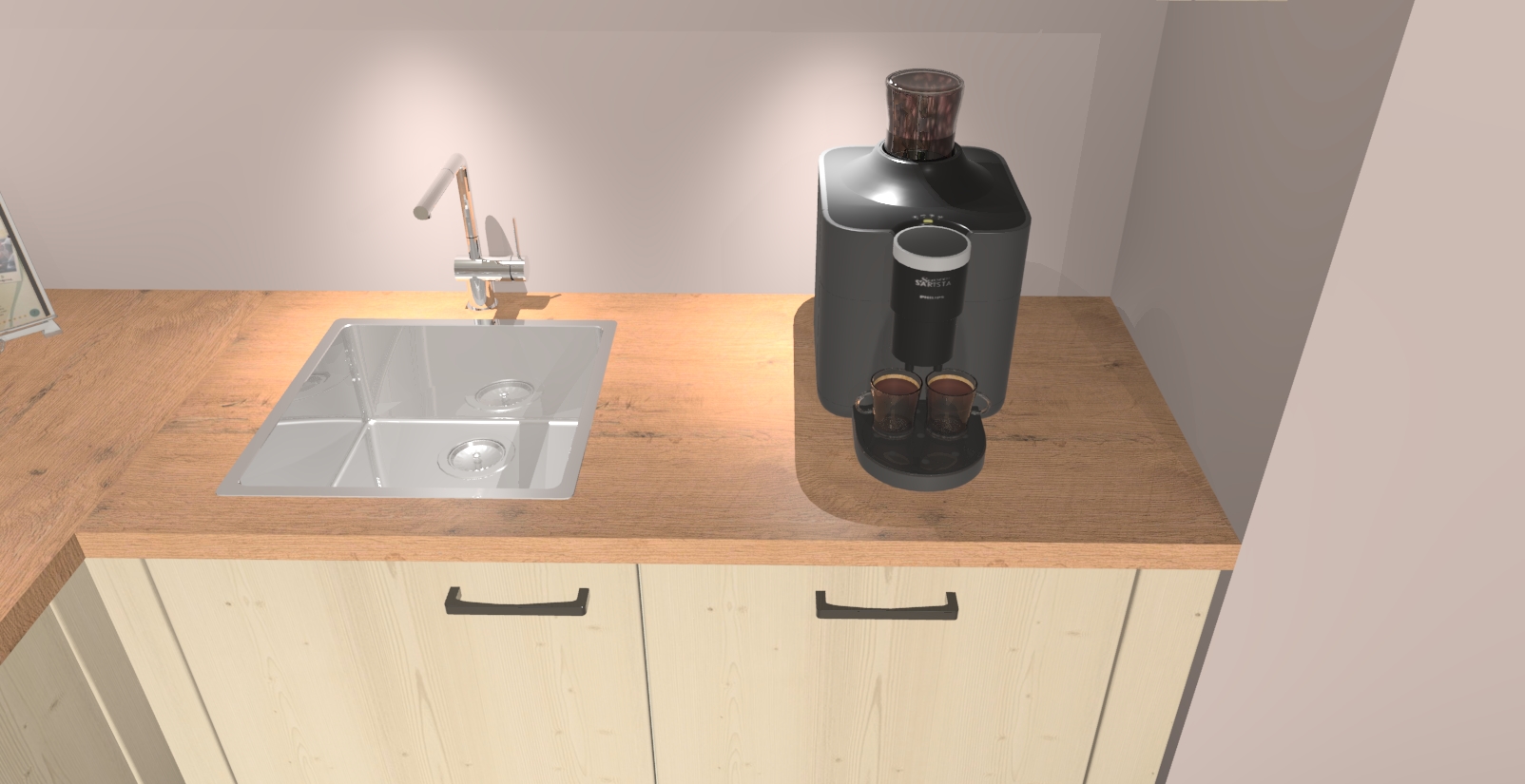 - De spoelbak is nog niet in gevreesd. Dit dient tijdens het werk gedaan te worden