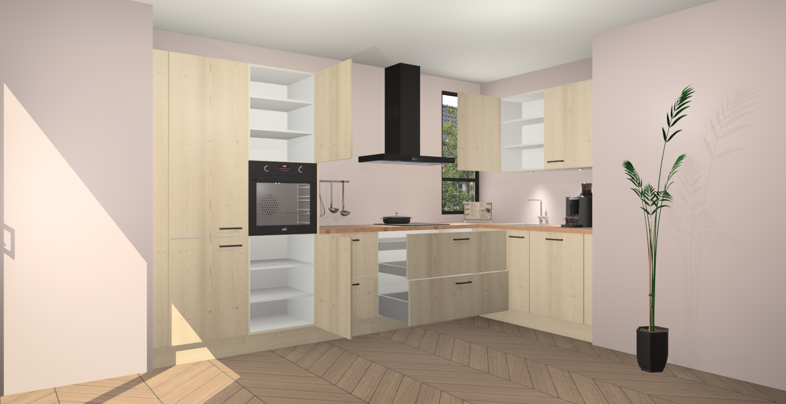 Welkom in uw nieuwe moderne keuken! Laat ons u voorstellen aan de Vuren keuken Vlaanderen . Deze prachtige hoekkeuken straalt exclusiviteit en luxe uit als geen ander. Het strakke design, de tijdloze kleuren en het model maken van deze keuken een moderne klassieker. En met voldoende opbergruimte heeft deze keuken echt voor ieder wat wils.
