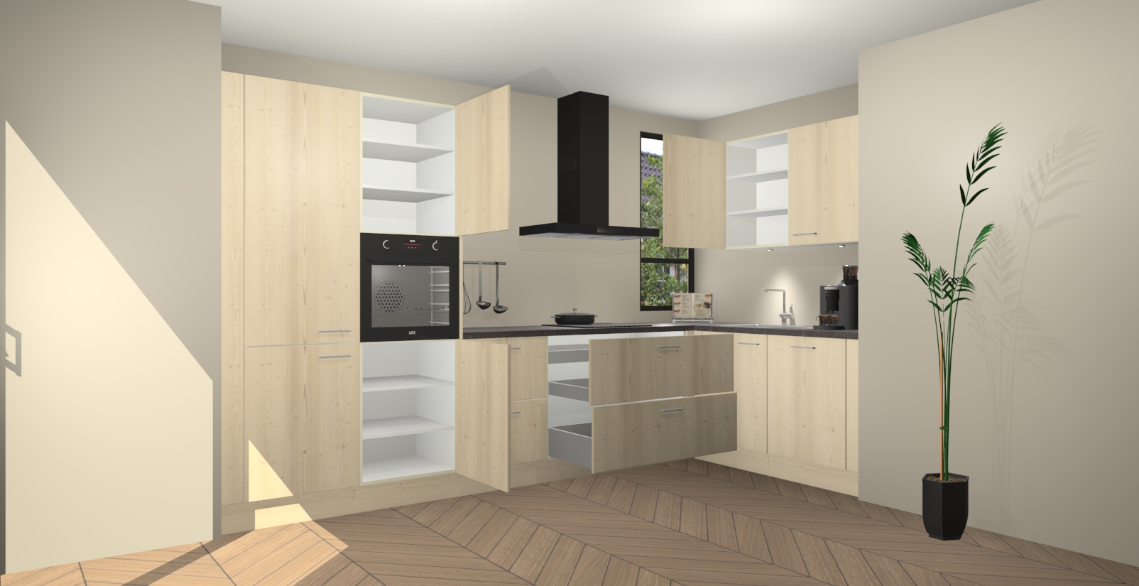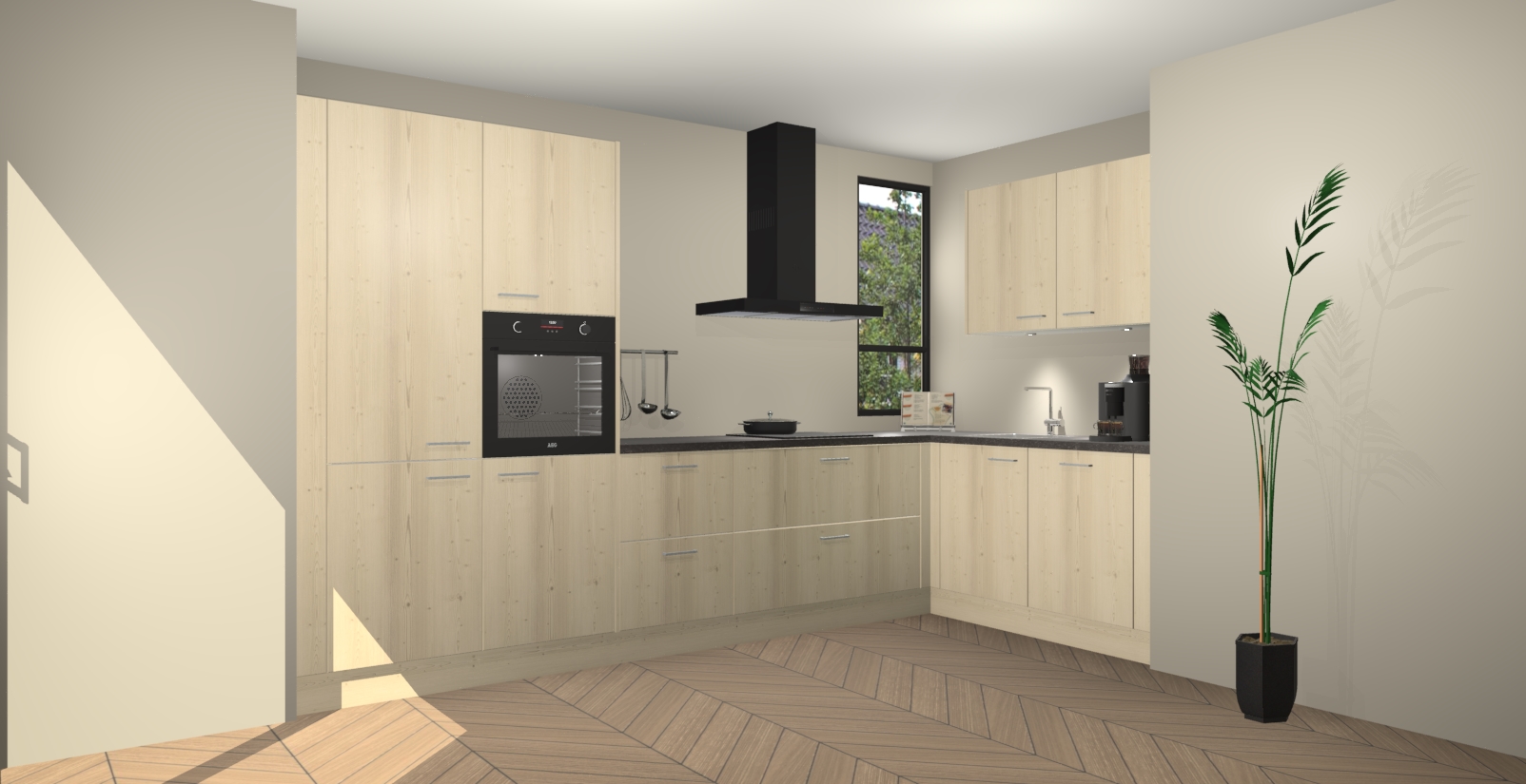 Welkom in uw nieuwe moderne keuken! Laat ons u voorstellen aan de Vuren keuken Vlaanderen . Deze prachtige hoekkeuken straalt exclusiviteit en luxe uit als geen ander. Het strakke design, de tijdloze kleuren en het model maken van deze keuken een moderne klassieker. En met voldoende opbergruimte heeft deze keuken echt voor ieder wat wils.