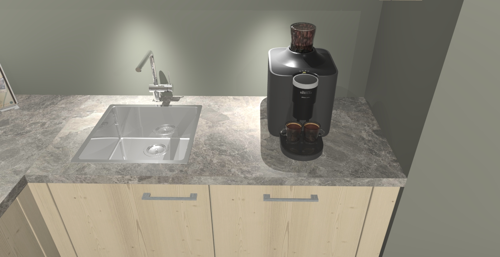 - De spoelbak is nog niet in gevreesd. Dit dient tijdens het werk gedaan te worden