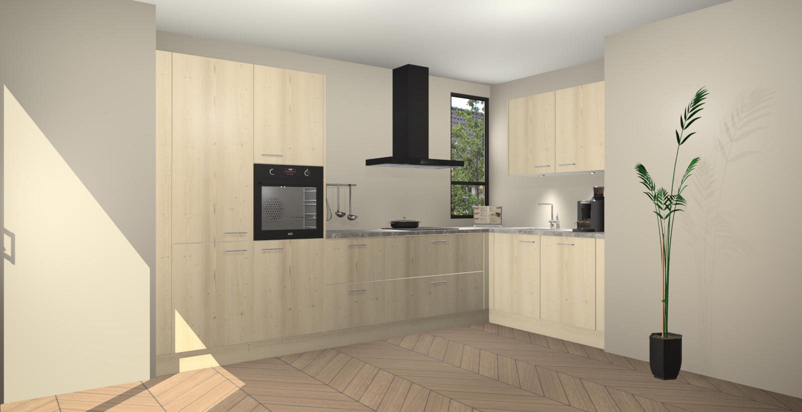 Welkom in uw nieuwe moderne keuken! Laat ons u voorstellen aan de Vuren keuken Vlaanderen . Deze prachtige hoekkeuken straalt exclusiviteit en luxe uit als geen ander. Het strakke design, de tijdloze kleuren en het model maken van deze keuken een moderne klassieker. En met voldoende opbergruimte heeft deze keuken echt voor ieder wat wils.