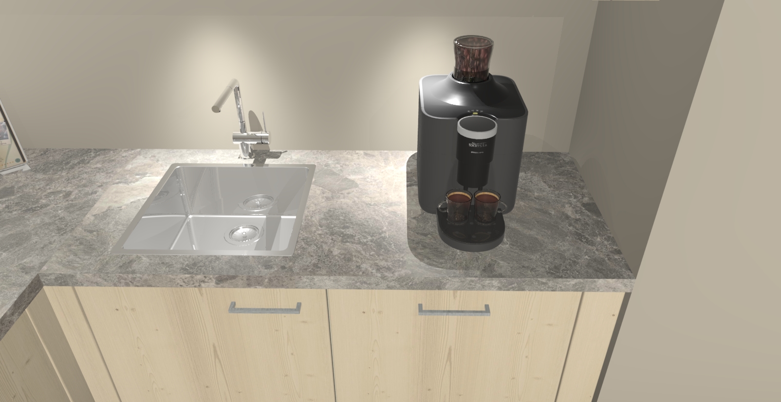 - De spoelbak is nog niet in gevreesd. Dit dient tijdens het werk gedaan te worden