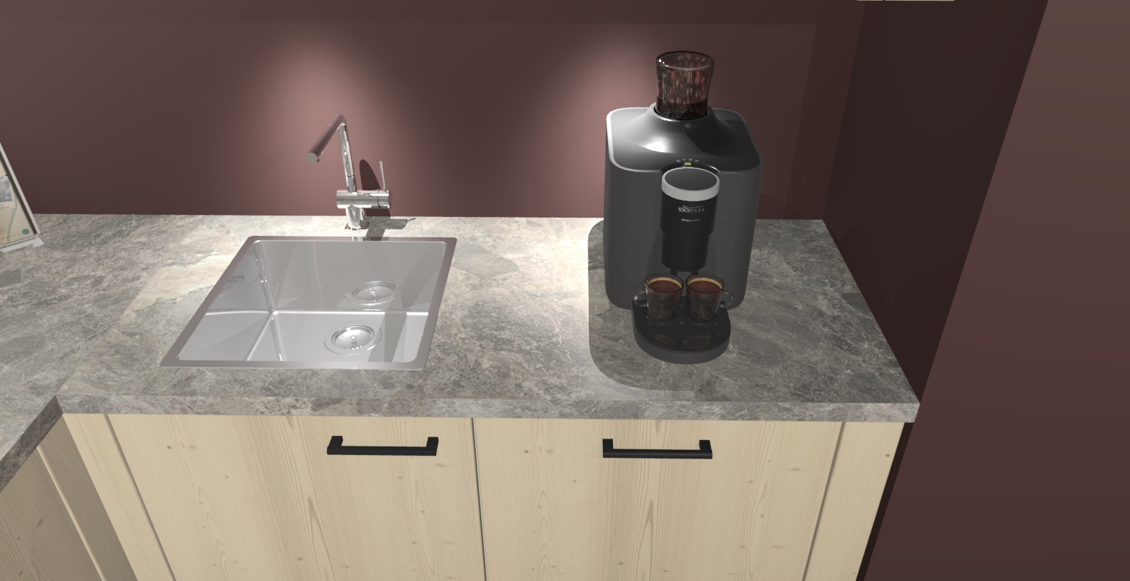 - De spoelbak is nog niet in gevreesd. Dit dient tijdens het werk gedaan te worden