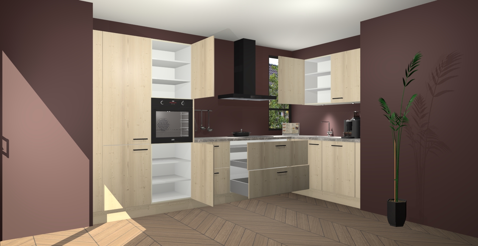 Welkom in uw nieuwe moderne keuken! Laat ons u voorstellen aan de Vuren keuken Vlaanderen . Deze prachtige hoekkeuken straalt exclusiviteit en luxe uit als geen ander. Het strakke design, de tijdloze kleuren en het model maken van deze keuken een moderne klassieker. En met voldoende opbergruimte heeft deze keuken echt voor ieder wat wils.
