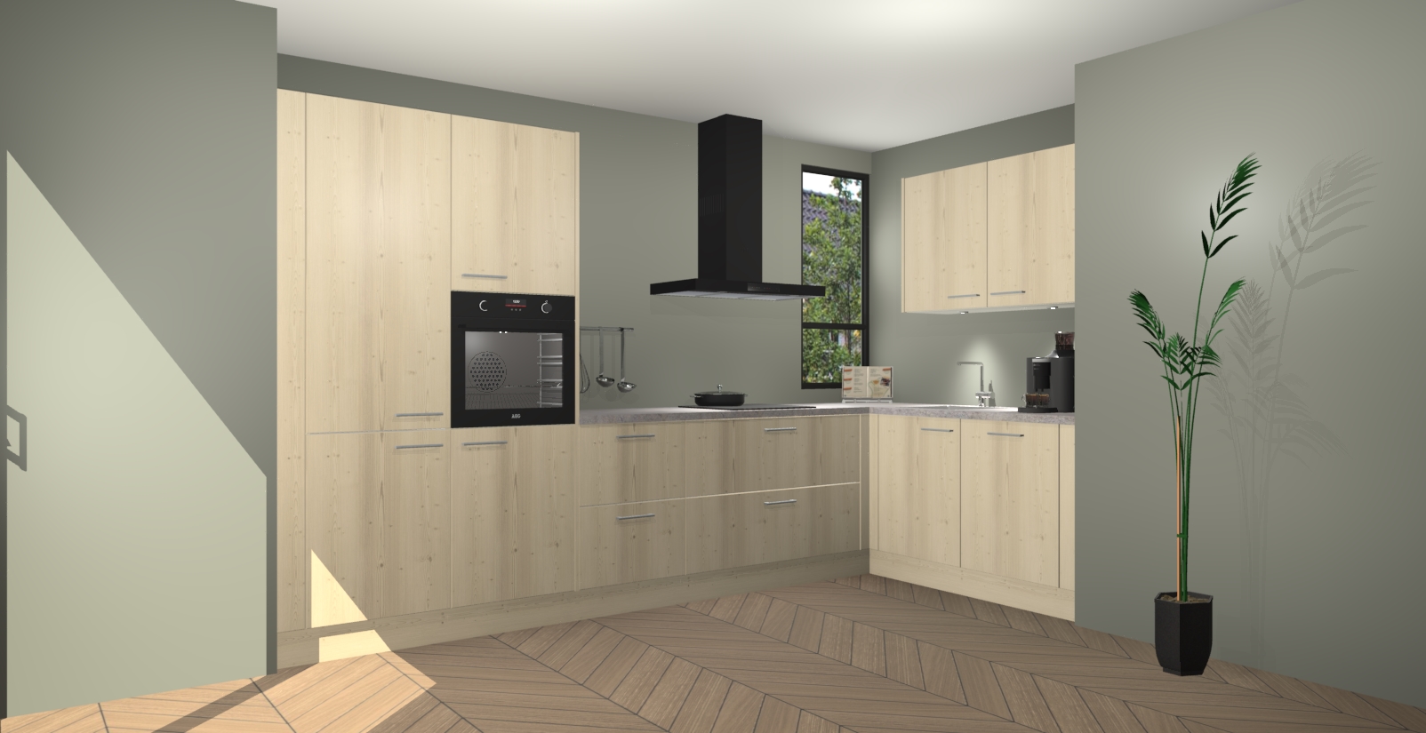Welkom in uw nieuwe moderne keuken! Laat ons u voorstellen aan de Vuren keuken Vlaanderen . Deze prachtige hoekkeuken straalt exclusiviteit en luxe uit als geen ander. Het strakke design, de tijdloze kleuren en het model maken van deze keuken een moderne klassieker. En met voldoende opbergruimte heeft deze keuken echt voor ieder wat wils.