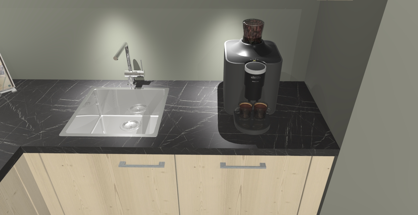 - De spoelbak is nog niet in gevreesd. Dit dient tijdens het werk gedaan te worden