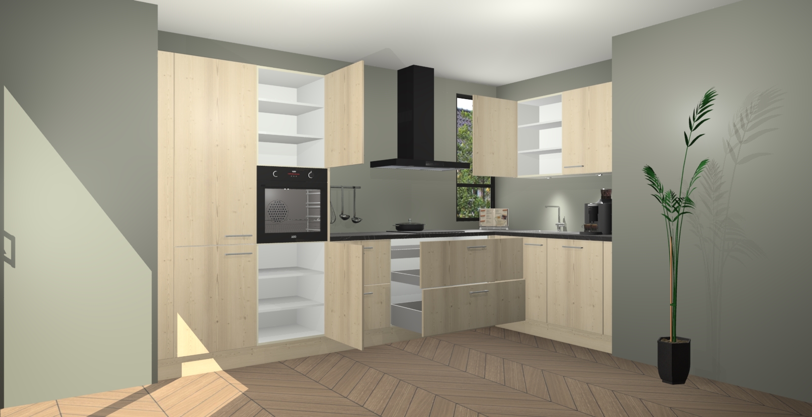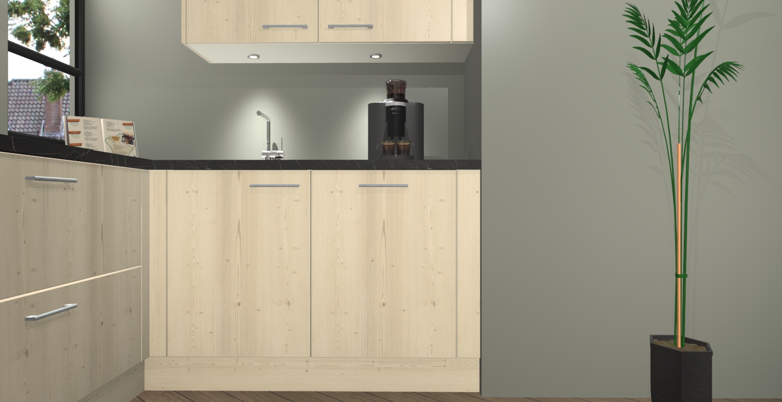 Welkom in uw nieuwe moderne keuken! Laat ons u voorstellen aan de Vuren keuken Vlaanderen . Deze prachtige hoekkeuken straalt exclusiviteit en luxe uit als geen ander. Het strakke design, de tijdloze kleuren en het model maken van deze keuken een moderne klassieker. En met voldoende opbergruimte heeft deze keuken echt voor ieder wat wils.